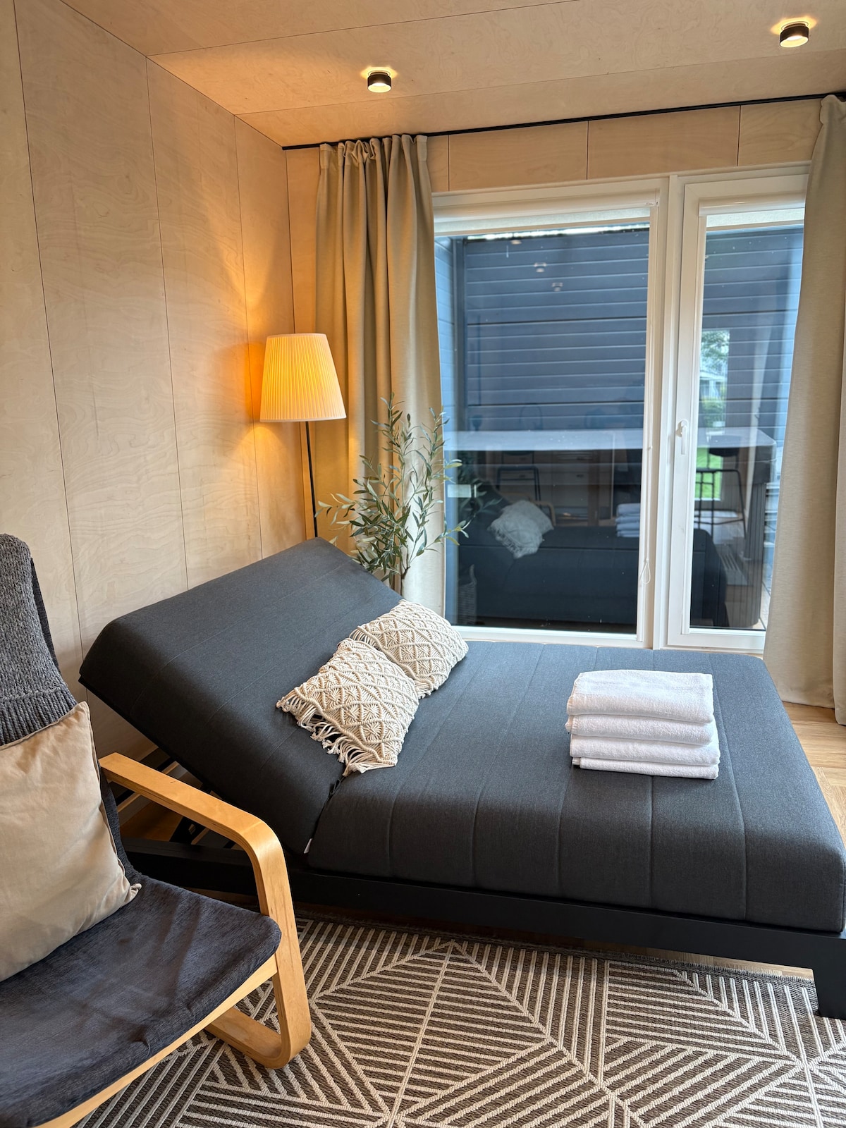 Mūsų kvartalas suprojektuotas taip, kad kuo mažiau jaustumėt kitus atostogautojus ir praeivius. Erdvus 2,8 aro kiemas aptvertas aukšta medine tvora. Didelė terasa ilgiems ir jaukiems vakarams! Čia galite atsipalaiduoti ir mėgautis lėta laiko tėkme. Gaivus, lofto tipo namas aukštomis lubomis tarp Kunigiškių wake vandens pramogų parko ir jūros! Atgauk jėgas, ilsėkis ir kurk. Patogiausia apsistoti 4 žmonėms, prireikus galima ir 6. Nuostabi Daniška sofa su patogiu čiužiniu išsiskleidžia!