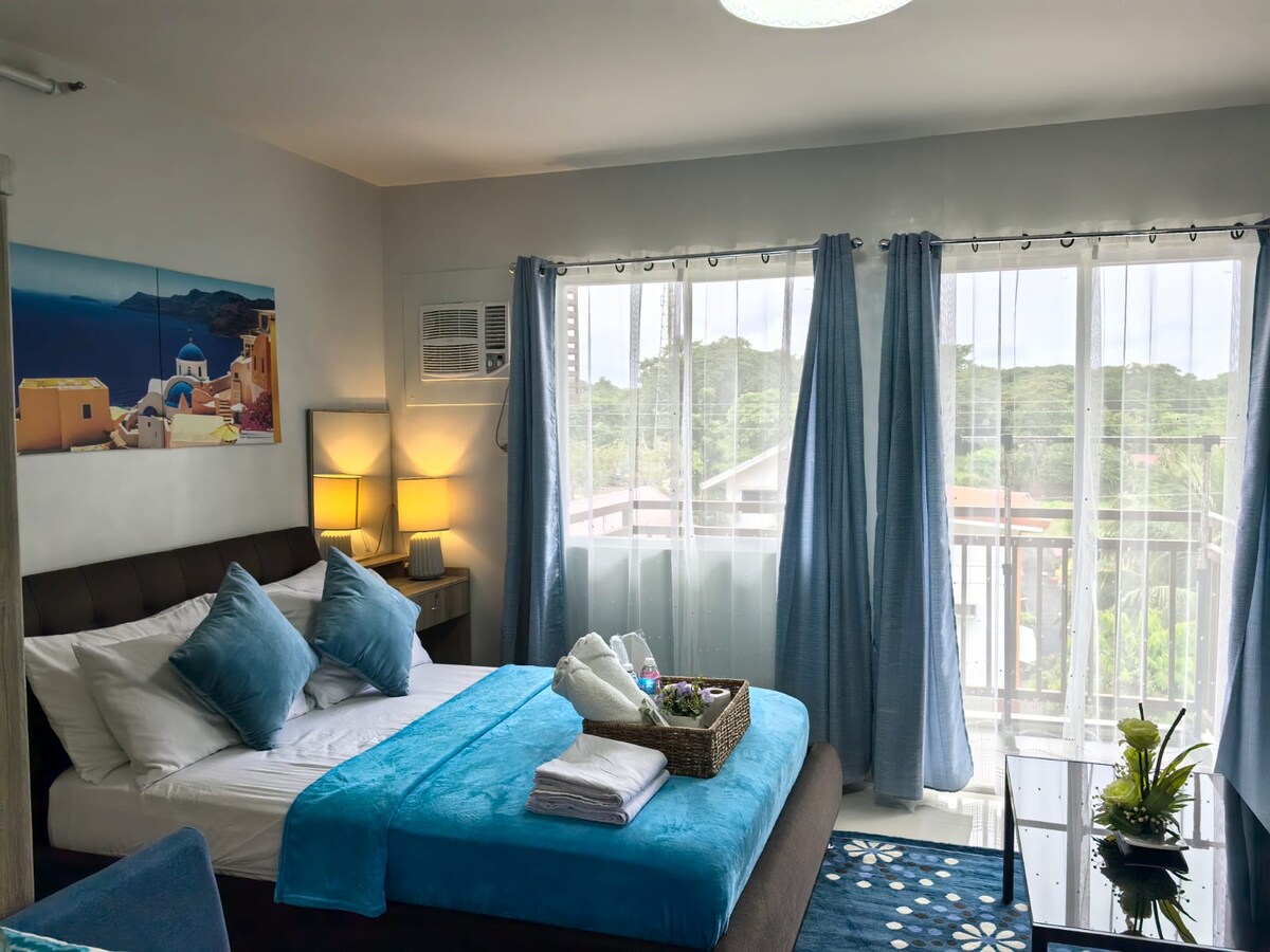 Apartamento elegante, totalmente mobilado e acessível com varanda. Uma casa longe de casa. Ideal para casais ou um grupo de 2 pessoas. Tranquilo e bem localizado, perto de comodidades, aeroportos e pontos turísticos. Acesso gratuito à piscina, clubhouse e ginásio. Um design inspirado em "Tagnabua moderno" para a propriedade como um reconhecimento da cultura indígena da ilha de Palawan. Wi-Fi disponível com TV, casa de banho privativa e chuveiro, kitchenette completa com utensílios e conjunto de jantar. Estadias curtas e longas.