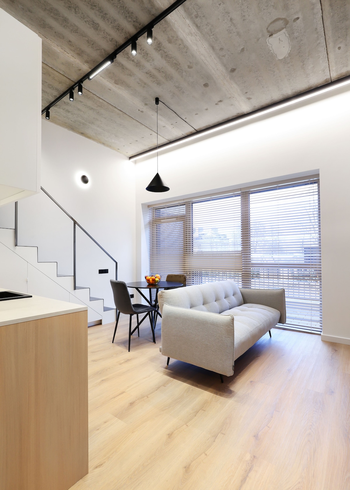 Este estúdio de 26m² em Užupis está localizado no 1º andar e é perfeito para 2 ou um viajante sozinho. Há uma cozinha totalmente equipada e uma máquina de lavar/secar 2 em 1. Observação: a altura do teto do mezanino é de 1,15 m, o que pode não ser confortável para pessoas mais altas. O estúdio fica de frente para uma rua moderadamente movimentada, mas é tranquilo à noite. A entrada é diretamente da rua. Estacionamento gratuito! Animais de estimação são bem-vindos!
