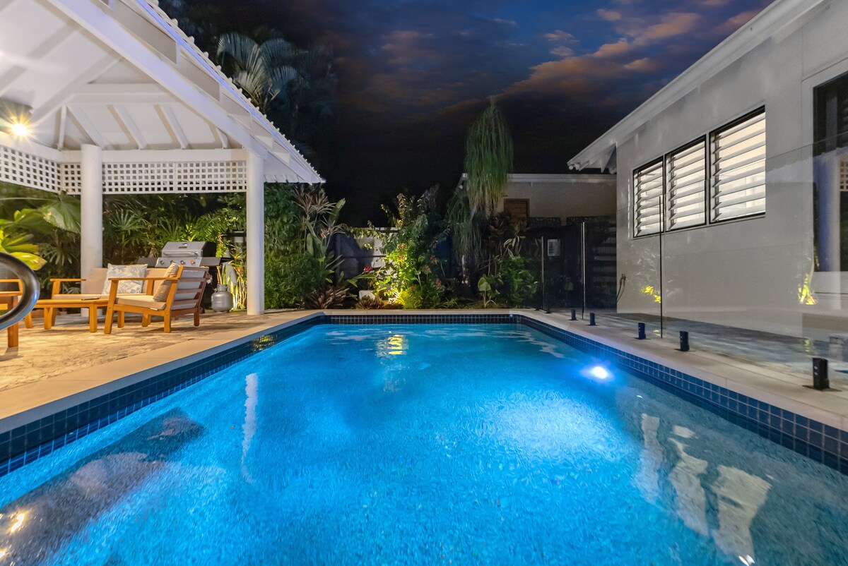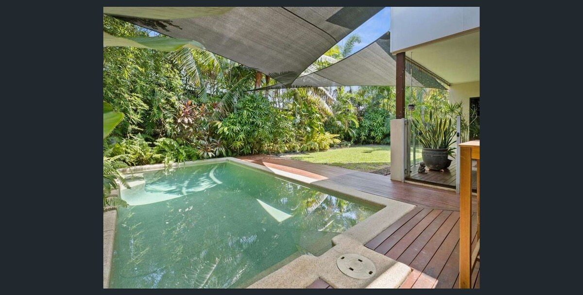 Um pequeno pedaço de paraíso, com uma grande piscina à sua porta e a praia a uma curta distância a pé. A 5 minutos de carro de Palm Cove e a 30 minutos da cidade. A nossa casa de hóspedes com tema de praia, situada no nosso jardim tropical, tem todos os confortos de casa. Espaçoso, ar condicionado, com cozinha, churrasqueira e mobiliário lateral da piscina. Wi-Fi gratuito + Netflix. A nossa casa fica do outro lado do jardim, por isso, estamos à disposição para lhe dar sugestões sobre a região ou para qualquer coisa de que possa precisar. Venha e fique, adoraríamos partilhar o nosso pequeno pedaço do paraíso consigo!