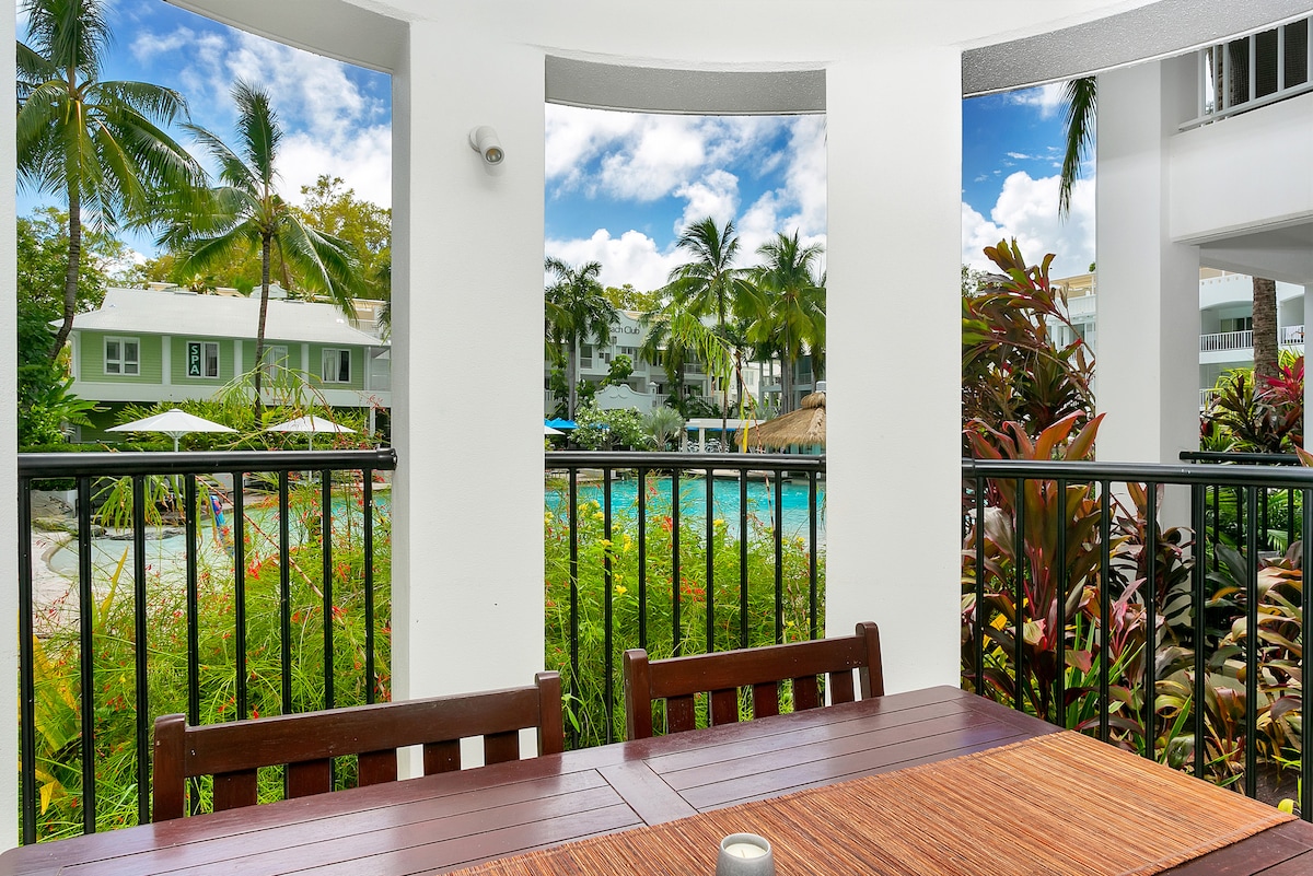 Unidade de luxo com 2 quartos em Palm Cove, piscina e vista parcial para o mar