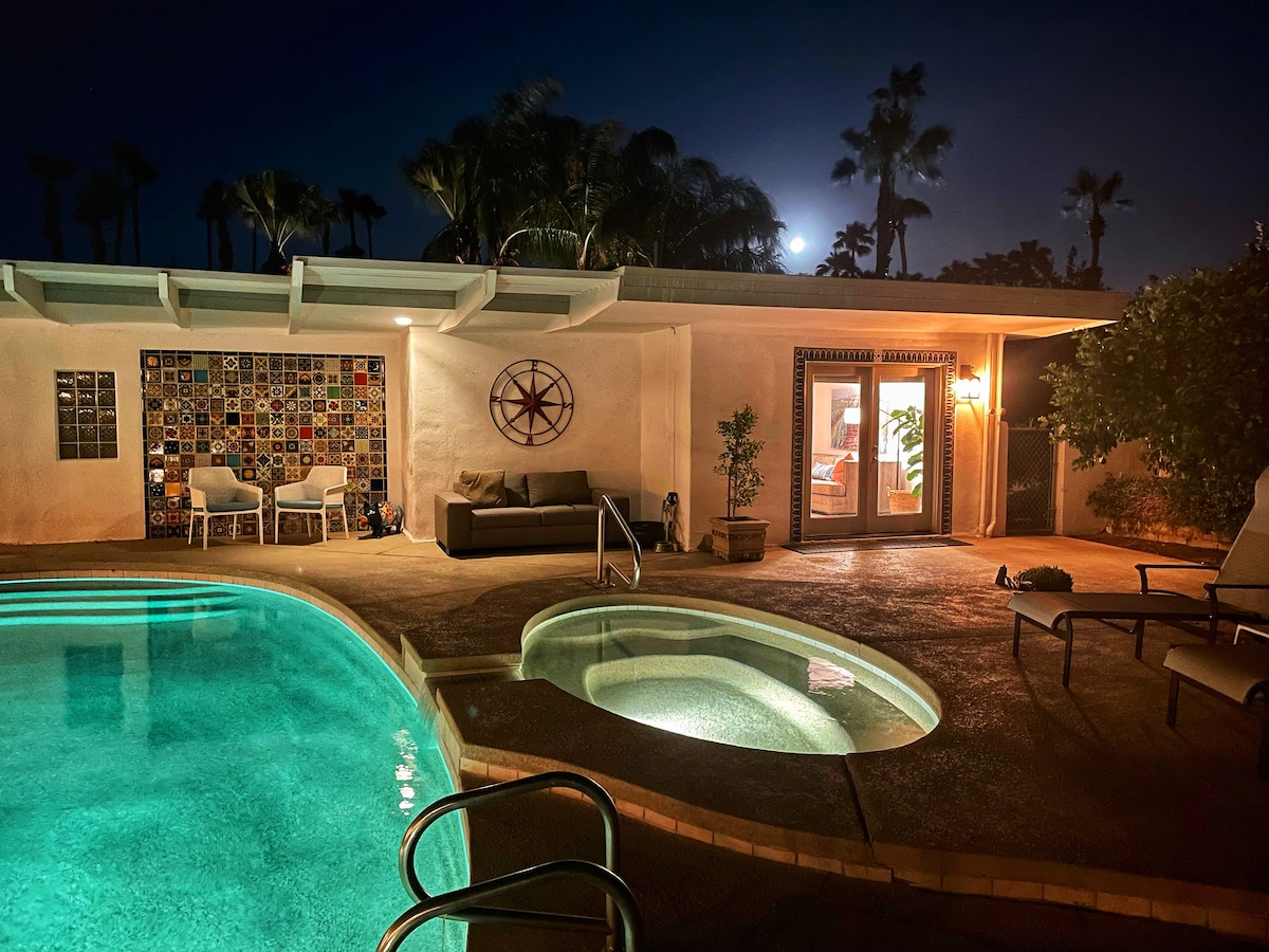 Viaje no tempo nesta casa de jardim de design de meados do século com vista para a montanha. A casa possui características arquitetónicas originais, mobiliário retrô e decoração em contraste com comodidades modernas, um pátio para churrascos e uma área de estar exterior coberta com excelentes vistas. A casa é deliciosamente paisagística com variedades exóticas de plantas do deserto e árvores maduras e a área da piscina semelhante a um oásis convida a uma sensação de relaxamento e paz. Licença DE arrendamento DE curta duração #066151