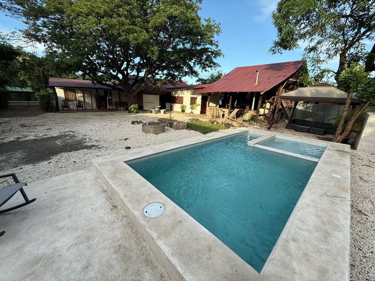 Traga toda a família para este lugar fantástico com muito espaço para se divertir! 2 camas, 2 suites de banho com piscina e jacuzzi. Grande gazebo sombreado e churrasco! Perto do aeroporto, compras no centro da cidade da Libéria e uma rápida viagem de carro para algumas das mais belas praias da Costa Rica. Limpo e recém-construído, com cozinhas grandes e todos os eletrodomésticos. As suítes têm ar-condicionado, água quente, lavanderia, TV a cabo e internet rápida e estacionamento seguro dentro do portão. Aproveite o tempo quente durante todo o ano!