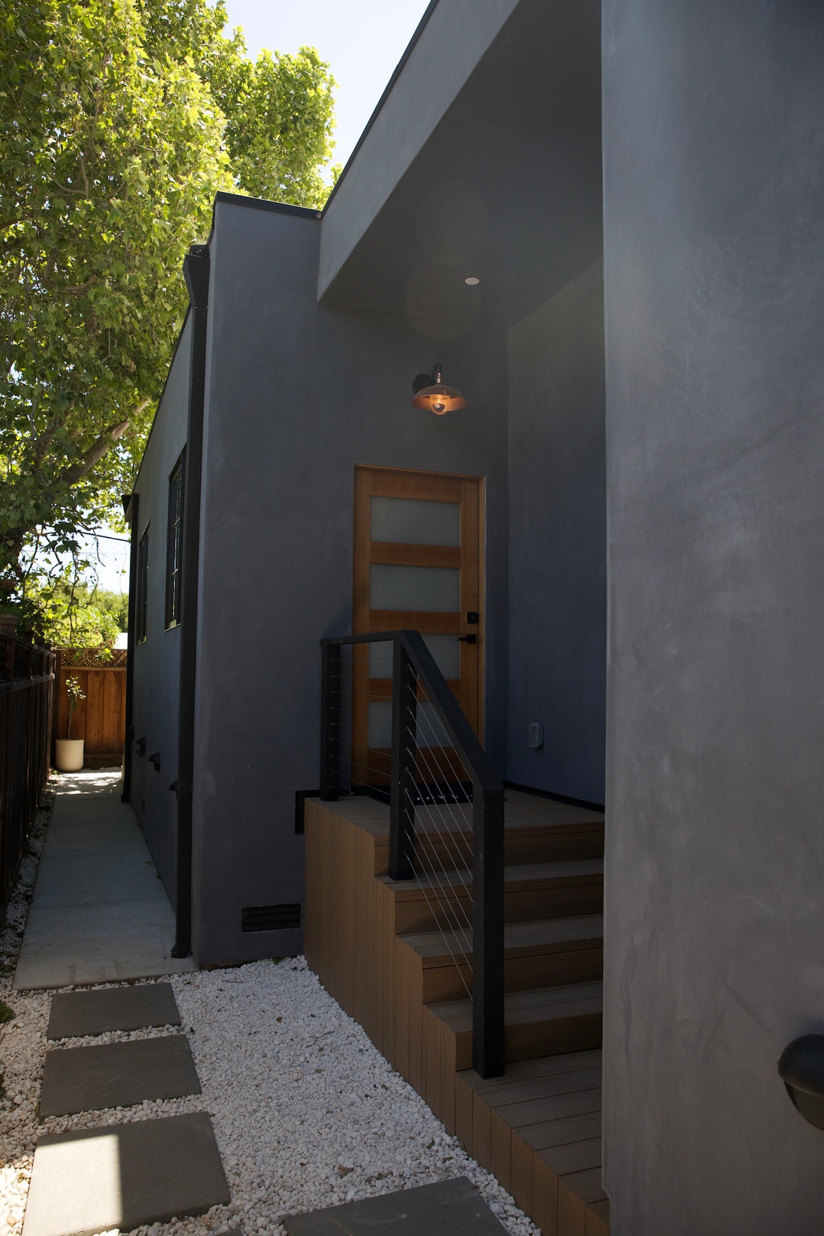 Descubra seu refúgio perfeito a um quarteirão da Universidade de Stanford, escondido em uma rua tranquila e arborizada em Palo Alto. Recém-construída, a casa de hóspedes de um andar oferece privacidade, situada discretamente na parte traseira da nossa propriedade. Você se encontrará a poucos minutos de restaurantes, mercearias e lojas. Fácil acesso às 101 e 280 fwys. Este refúgio fica a uma curta distância a pé da estação Caltrain CA Ave, bem como de paradas para o serviço gratuito de transporte Marguerite de Stanford.