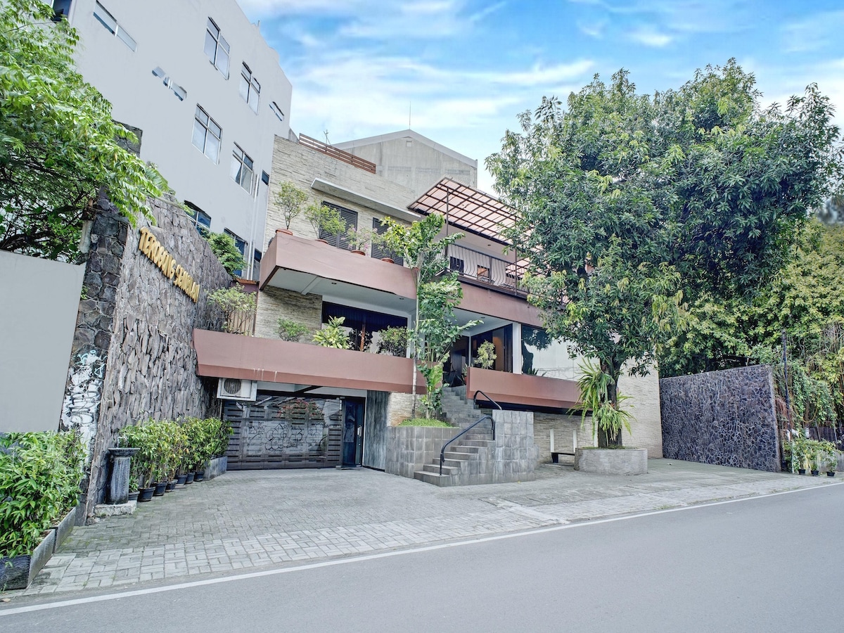 Com um amplo pátio, estacionamento verde e espaçoso e um jardim de frutas e vegetais, a Batutapak Guesthouse é adequada para escrever, descansar e atividades de lazer para famílias, colegas e amigos. As famílias podem dormir em quartos, em tendas no pátio ou fazer eventos na sala de estar e no pátio. Há três quartos, todos com ar condicionado, há um teclado e guitarra. Você pode cozinhar na cozinha completa e os utensílios de jantar também estão completos. Também é possível pedir comida. Para completar, há uma churrasqueira e um ventilador para grelhar frango/peixe😋