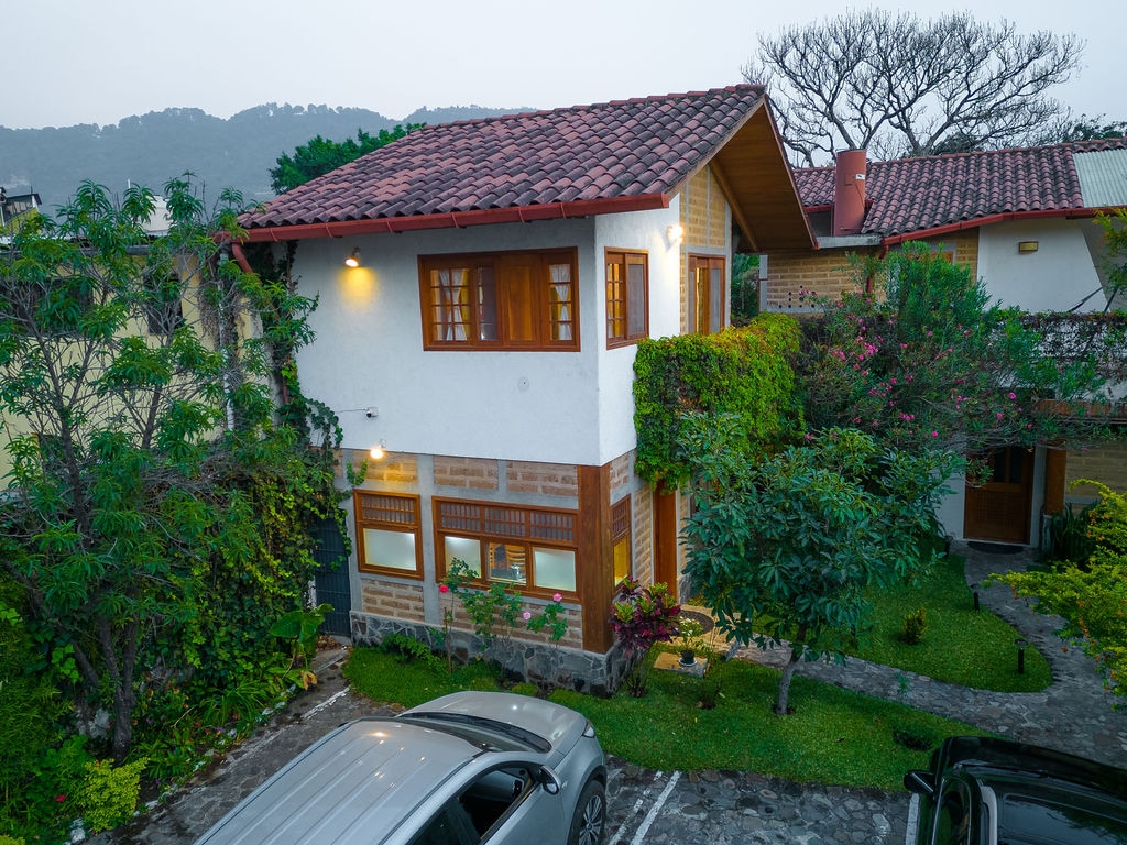 Relaxe nesta vila tranquila e elegante recentemente renovada para dois. Ideal para uma escapada romântica e para aqueles que procuram paz, tranquilidade e privacidade. Situado em um enclave isolado que consiste em cinco casas de campo, localizado nos arredores de Panajachel, a 5 minutos de carro ou tuk Tuk, este lugar é verdadeiramente o paraíso na terra. Aproveite o pôr do sol mais espetacular do Lago Atitlán da sua cama ou da espaçosa varanda da frente.