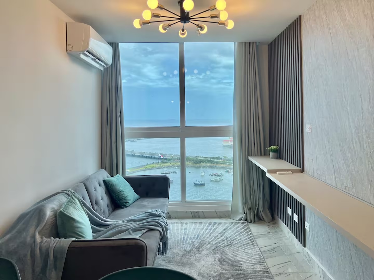 Vive una experiencia única, apartamento moderno y con estilo propio, donde cada amanecer y atardecer se convierte en un espectáculo. Disfruta de impresionantes vistas a la ciudad de Panamá, la bahía y el Casco Antiguo desde la comodidad de tu alojamiento. Ubicación Inmejorable Situado a solo 5 minutos del encantador Casco Viejo y del famoso mercado de mariscos, y a 10 minutos de zona bancaria. Además, contarás con una estación de metro y varias paradas de autobús a solo unos pasos del edificio