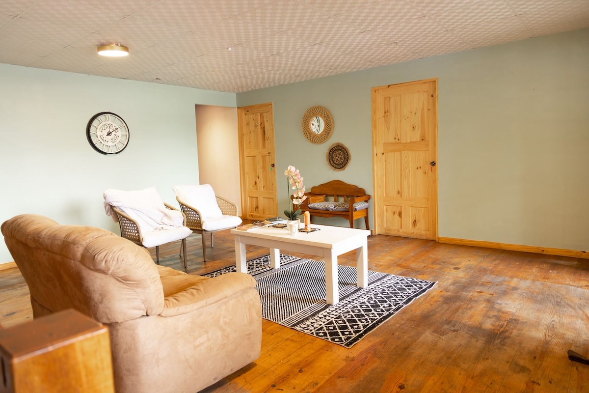 La opción ideal para grupos de amigos que quieren hospedarse juntos y disfrutar Boquete sin separarse. La segunda planta se alquila completa para un solo grupo (máx. 9 personas, idealmente adultos). Cuenta con 4 habitaciones, 1 baño, sala, balcón amplio y semi cocina. Ubicada en Los Naranjos, cerca del centro. Forma parte de una propiedad con tres alojamientos y áreas exteriores compartidas.