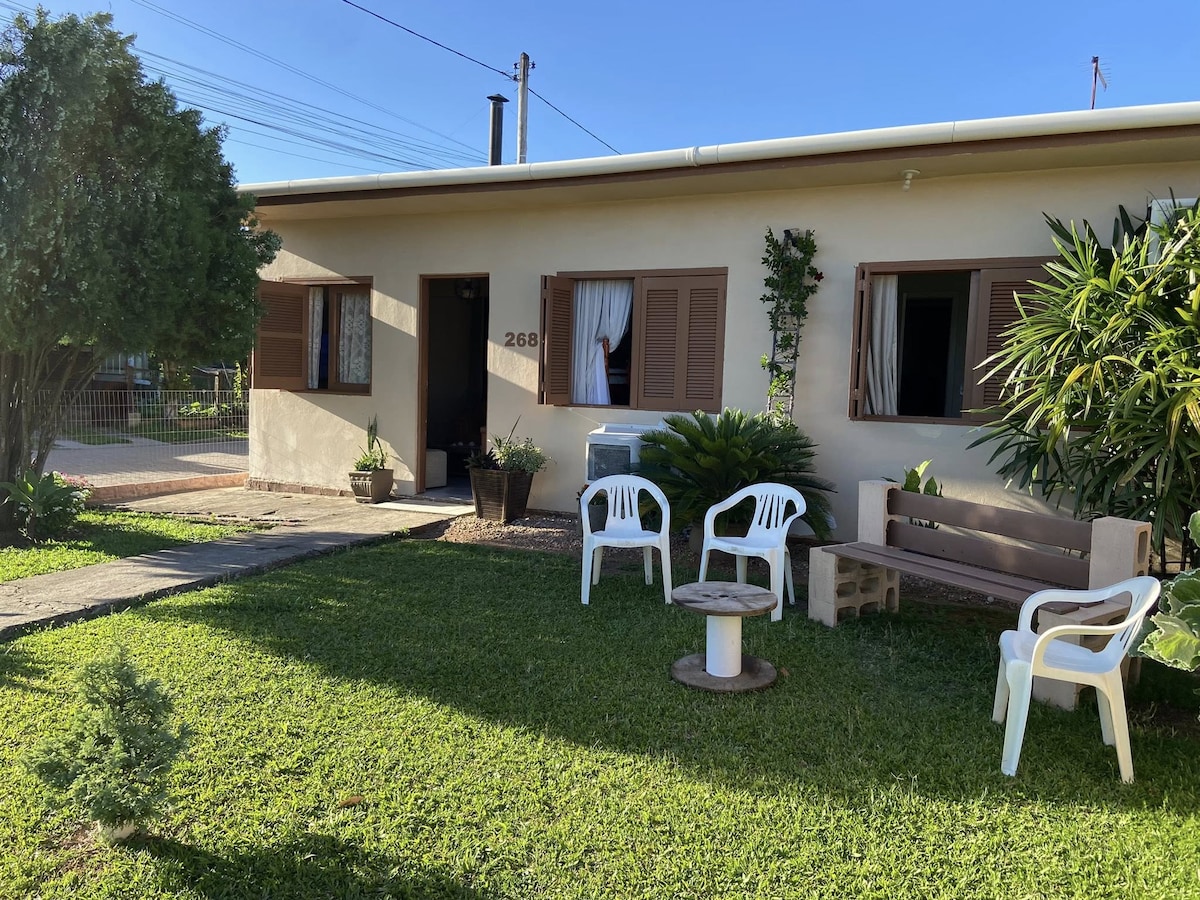 Casa inteira, pátio dos fundos compartilhado. Local limpo e aconchegante, Ideal para passar a noite durante sua viagem da Argentina para o litoral de Santa Catarina. Espaço seguro, com piscina, ar condicionado nos dormitórios e também na sala de estar. Localização: bairro familiar e tranquilo, a cerca de 2 minutos em carro do entroncamento da BR 290 com a BR 471.