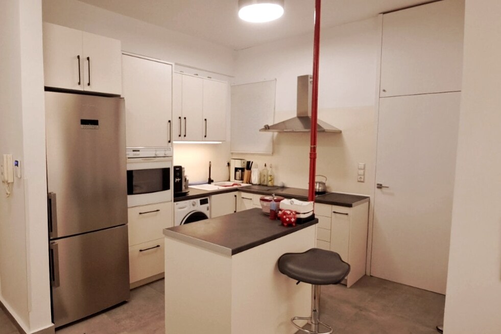 The apartment is located in the center of Piraeus and next to the port. Metro, airport connection, ferries, train, suburban train, bus station and tram all within 100 meters. Central location!! The apartment you are going to stay in is brand new and fully renovated with bedroom, kitchen, living room 69 square meters with high standards and designed by an excellent architect. Located on the 4th floor. It is comfortable and luxurious to make your stay unforgettable!