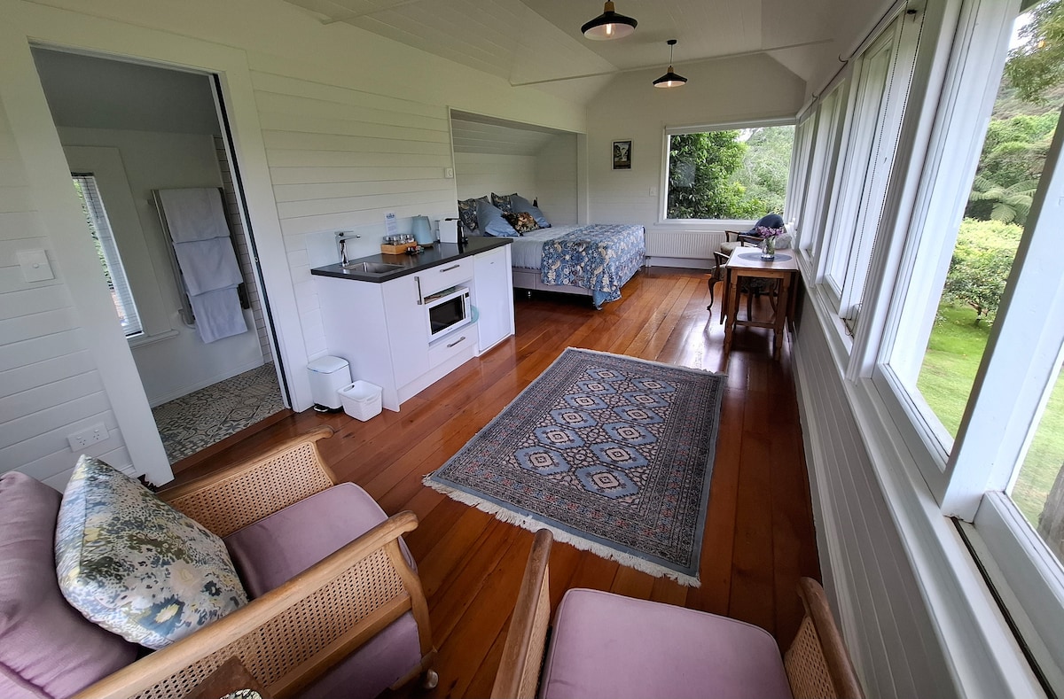O Tuparipari Riverbank Retreat está situado nas margens do rio Whanganui entre árvores nativas e em um jardim de pássaros amado adornado com arte de jardim. Este apartamento estúdio retrô é completo com uma suíte, cozinha acoplada e entrada privativa. Sua entrada alternativa é através de uma escada em espiral que leva à sua lavanderia e um segundo banheiro. Este é um ótimo retiro para casais, aventureiros solitários ou viajantes de negócios. O Wi-Fi é muito rápido (velocidade Gigabyte) e é ilimitado.