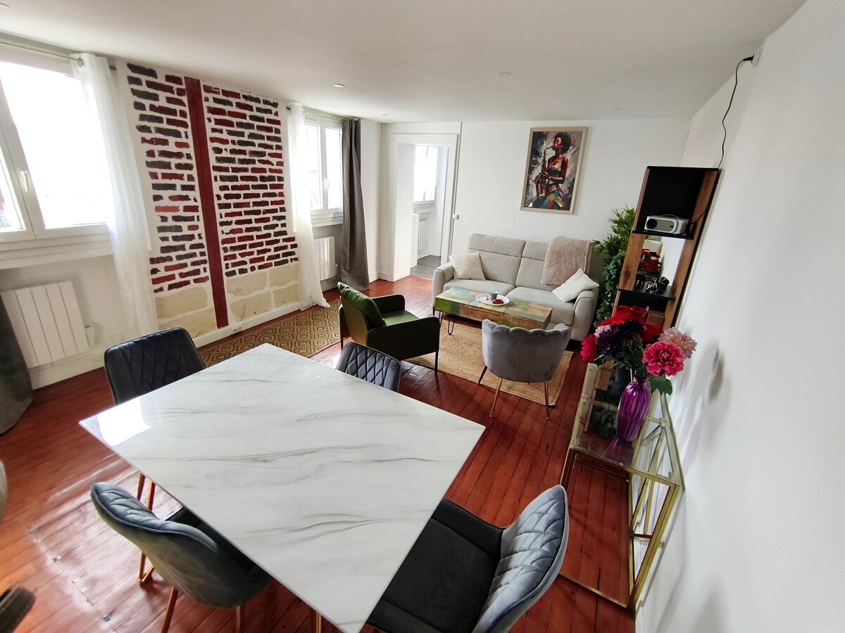 "No Gobelet de Coëffort" Bem-vindo ao nosso apartamento de 135 m² perto da estação de trem Gare du Nord! Venha passar um momento de convívio com a família ou amigos em torno da mesa de pebolim, do bar de coquetéis ou da jukebox. A grande cozinha bem iluminada e a espaçosa sala de estar permitem bons momentos de convívio. Nosso alojamento é perfeito para os seus momentos de trabalho com os colegas: Wi-Fi, RJ45, próximo à estação de trem (10 minutos a pé), 3 quartos com banheiro e WC privativos, terraço...