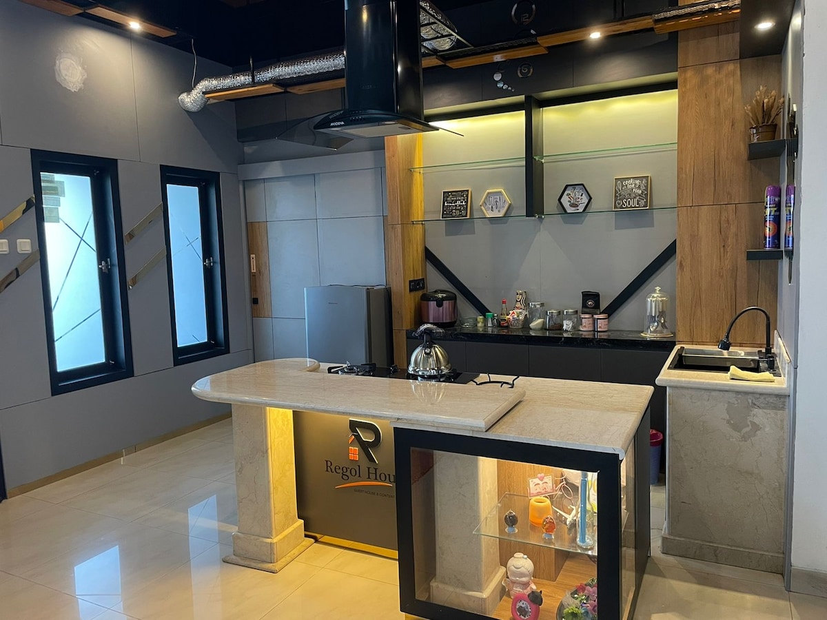 A Regol House é uma Guest House Plus que oferece um lugar para ficar no centro de Bandung e também vem com um espaço de trabalho para atividades comerciais confortáveis e, ao mesmo tempo, confortável para construir tempo de qualidade com a família, na área da frente da casa de hóspedes há um parque público e instalações de pista de corrida. Há também instalações de estação de cozinha que podem ser usadas como conteúdo de cozinha, churrasqueira ao ar livre, espaço para refeições ao ar livre, lazer na esquina e também café com a família ou colegas.
