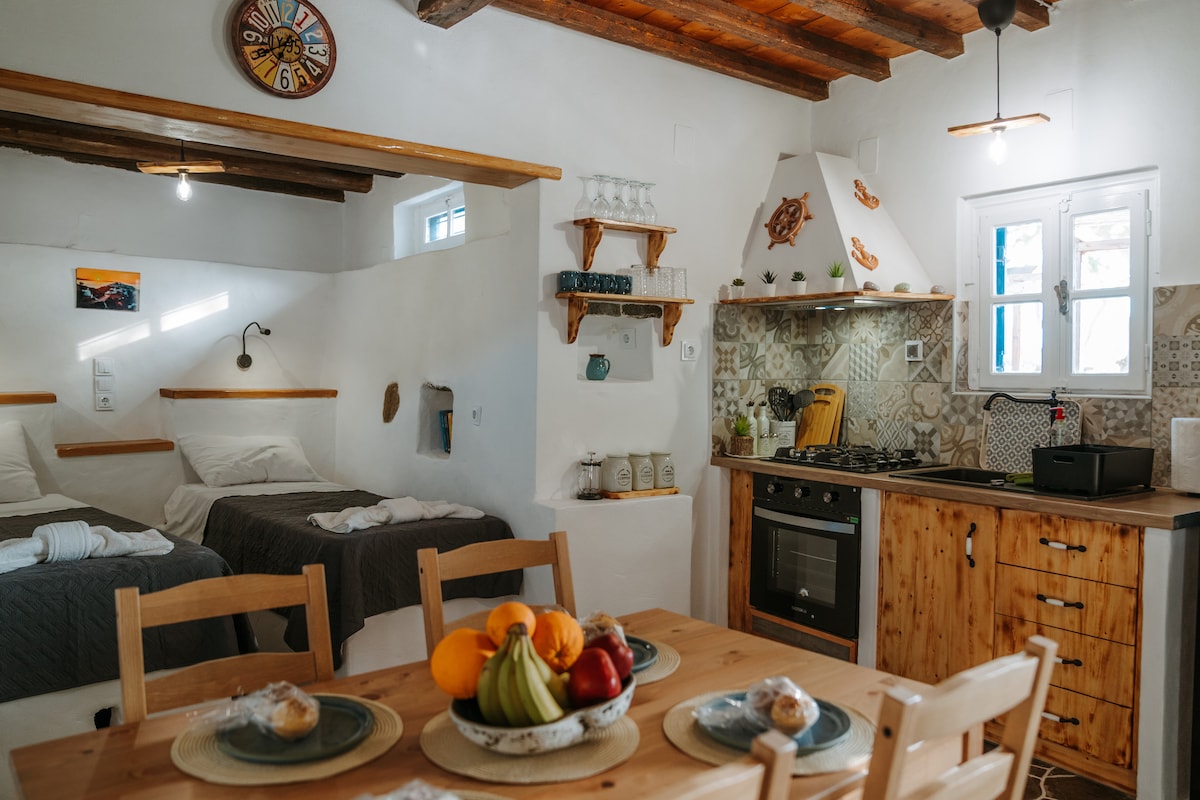 No coração do antigo castelo de Sifnos, com uma vista maravilhosa para o famoso mar Egeu, o nosso espaço fará com que se sinta em casa. Totalmente renovado em 2019 e com todas as comodidades modernas, dá-lhe a oportunidade de desfrutar da ilha e relaxar. Mantemos o caráter tradicional da casa como era há séculos. Também é possível acomodar 3 pessoas para uma estadia agradável.