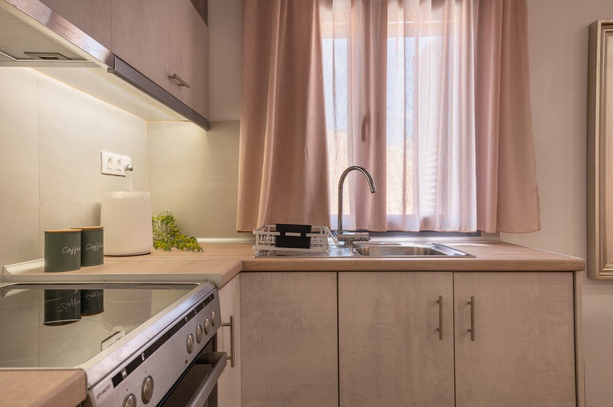 Curta uma experiência elegante neste lugar bem-localizado. Casa de 1 quarto recentemente reformada, cada detalhe é importante. Apenas 2 minutos a pé do porto antigo e 1 minuto a pé da rua do mercado tradicional, da praia de Romeikos-gialos e dos pontos de vida noturna