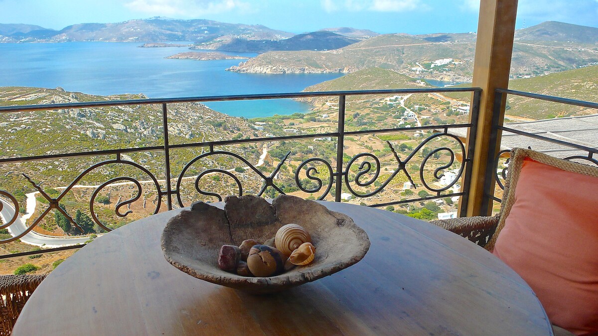 Esta casa antiga, pacientemente renovada, está localizada no lado sul da aldeia de Chora, classificada pela UNESCO. Longe do fluxo de visitantes, oferece diferentes espaços de estar em torno de um jardim à sombra. 2 quartos com casas de banho privadas, 1 sala de estar, 1 cozinha, um terraço coberto, diferentes terraços ensolarados estão disponíveis para os visitantes.