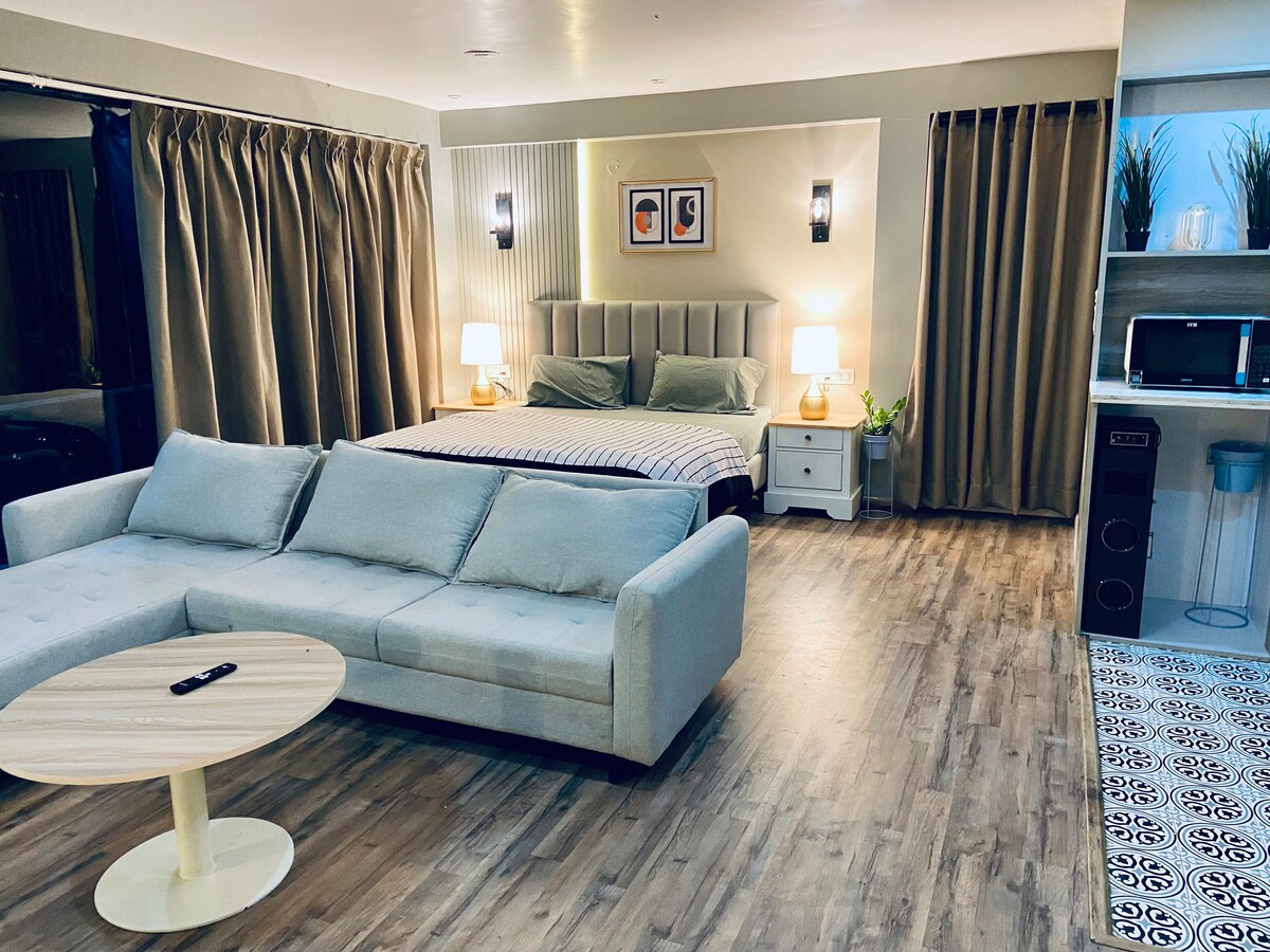 Para aqueles cansados de seguir trilhas turísticas habituais e procurar destinos únicos e menos lotados, saia da rotina e desfrute de uma experiência inesquecível em nosso luxuoso apartamento de 2 quartos que tem uma estética deslumbrante, oferece tranquilidade incomparável e oportunidade de mergulhar totalmente no momento presente. Situado a uma altura de 7500 pés, oferece vista deslumbrante do vale com pomares de maçã polvilhados de neve, pinheiros/árvores de cedro, extensa cordilheira e rio Beas sinuoso!