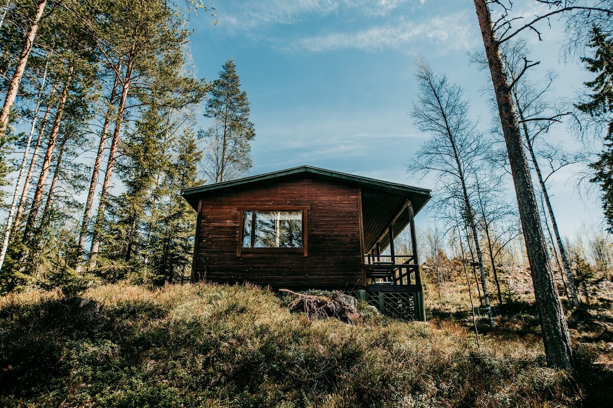 Uma cabana de madeira finlandesa tradicional e acolhedora ao lado de um pequeno lago tranquilo. A cabana está situada numa bela área tranquila no meio de florestas. A casa de campo tem acomodações para quatro pessoas (um loft para dormir e um sofá-cama). Há uma pequena cozinha encantadora, uma lareira no interior e uma fogueira no exterior, uma casa de banho seca de compostagem e uma sauna (não há casa de banho normal). O tubo quente está disponível com taxa extra (50e). Área livre de fumo e animais de estimação. As crianças são bem-vindas. Seja muito bem-vindo, nosso hóspede!