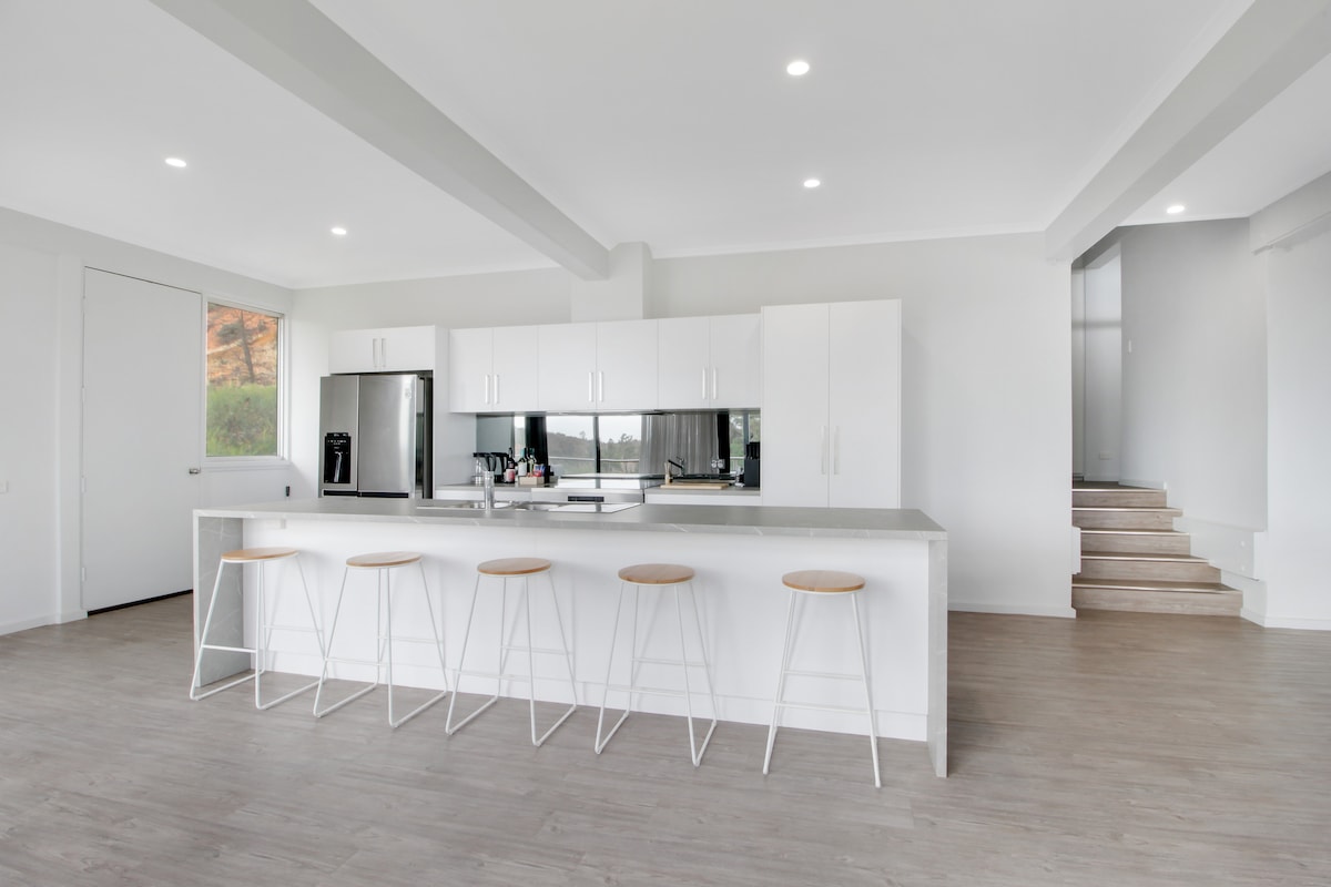 Whether it's for work or a family holiday, this apartment is surprisingly spacious and comfortable. The king sized beds can be easily changed to 2 single beds. Both bedrooms have their own bathroom and large Tv. Ducted, Reverse cycle air-conditioning throughout the whole house, and a fully equipped kitchen and super comfy living area will guarantee a memorable stay. This apartment is walking distance to food places, a lawned park and shopping centre. It's everything you need plus some
