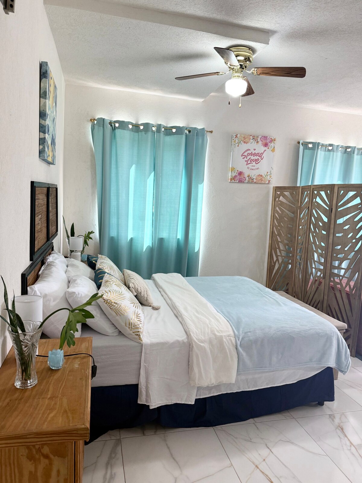 Nestled in an exclusive cul-de-sac overlooking the serene greens of the Durants Golf Course, this elegant studio apartment offers a private tropical retreat. Comfortably accommodating two adults and a child. 2-minute walk to the bus stop, offering effortless island travel, and only 7 minutes from the airport. You’re also 2 minutes from the popular Kermitt Bar, 5 minutes from Miami Beach, and 6 minutes from shopping centres, supermarket, gas station, and the world-famous Oistins Fish fry.