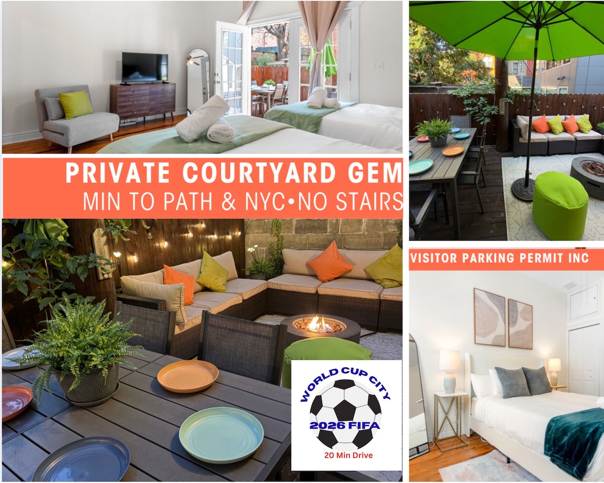 Joia com pátio privado•A poucos minutos do PATH e de NYC•Passe de estacionamento