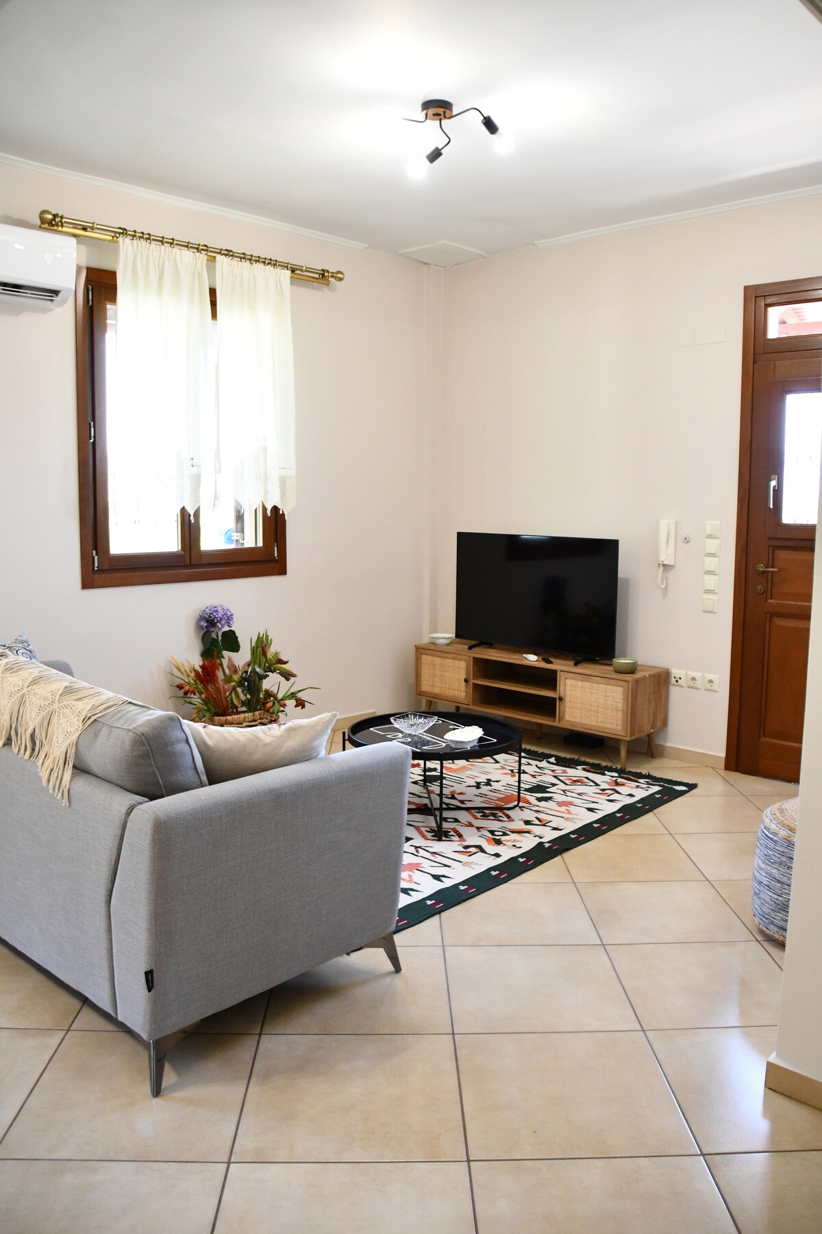 Vai encontrar este belo apartamento numa zona chamada "Paleologio". Está localizado entre Sparta e Mystras. A apenas 5 minutos de carro de ambos os lugares. Perfekt como base para combinar todas as atrações de Esparta, Mystras e o monte Taygetos. Também fica a cerca de 35 minutos de carro para as praias mais próximas de Gytheio, Mavrovouni e Bathi. O apartamento está localizado no piso térreo de uma casa maior com um total de 3 andares. Tem uma entrada separada e acesso ao jardim nas traseiras.