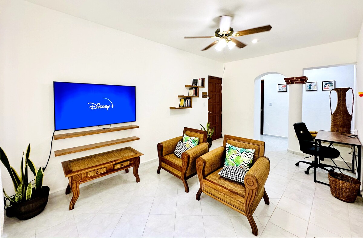 Apartamento no último andar, muito central, perto das principais praças comerciais e do Parque Kabah, onde você pode fazer exercícios pela manhã. Está localizado em uma área tranquila e tem seguranças à noite. Na esquina há lavanderias, loja vegana, Oxxo e Soriana para você fazer suas compras. A poucos quarteirões de distância há restaurantes e bancos. Na esquina passa o ônibus que leva você para a zona hoteleira. Ar-condicionado Wi-fi Smart TV e cabo Água quente Segurança