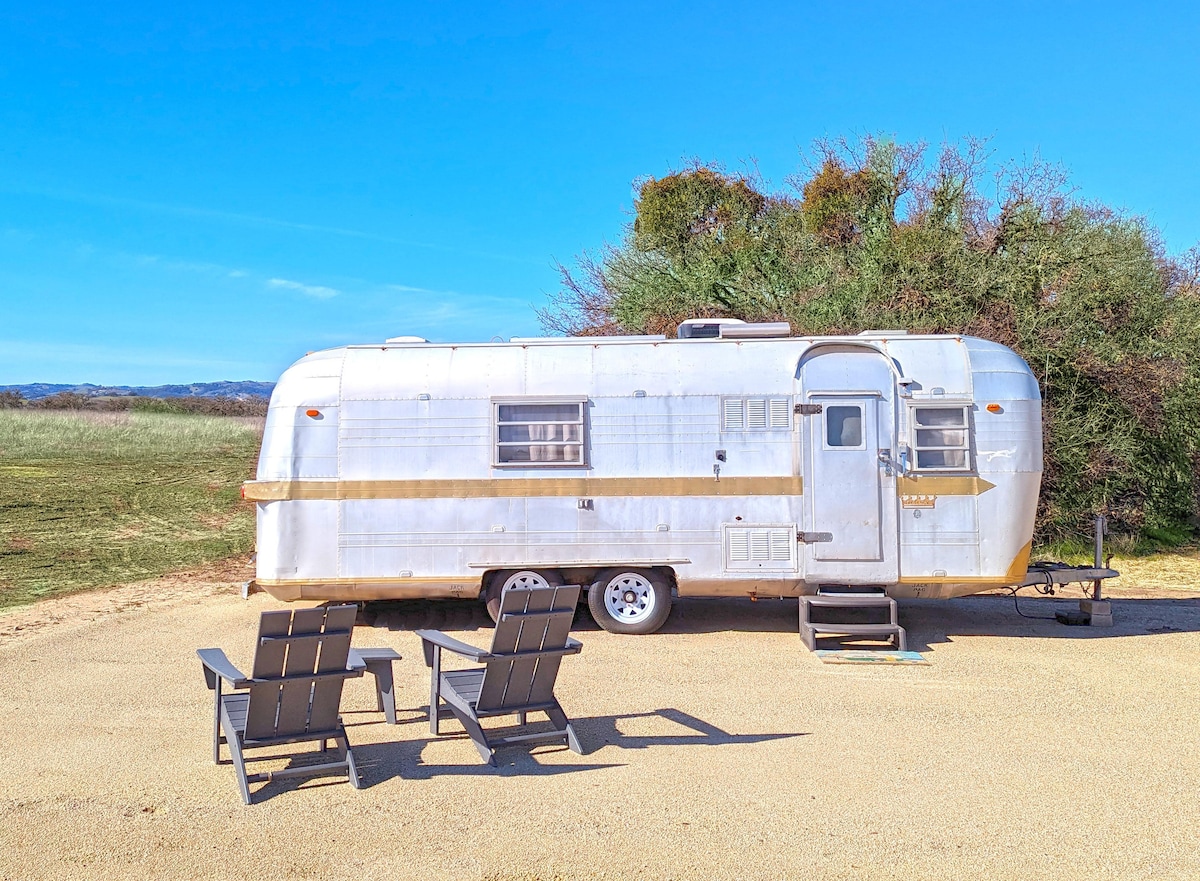 Durma sob as estrelas e entre as videiras num reboque restaurado de 30' Airstream, com o estilo de Led Zepplin. Possui duas camas individuais, kitchenette, micro-ondas, mini-frigorífico, chaleira, prensa francesa, ar condicionado, aquecedor, adirondacks e mesa de jantar. A poucos passos estão 5 casas de banho e chuveiros quentes. Fornecemos toalhas, roupa de cama. O trailer retrô fica num rancho de 120 acres com videiras, carvalhos e vistas épicas do pôr do sol. Desfrute de degustação de vinhos, churrasco, lareira, caminhadas, golfe frisbee, alpacas, vistas para o pôr do sol na natureza.