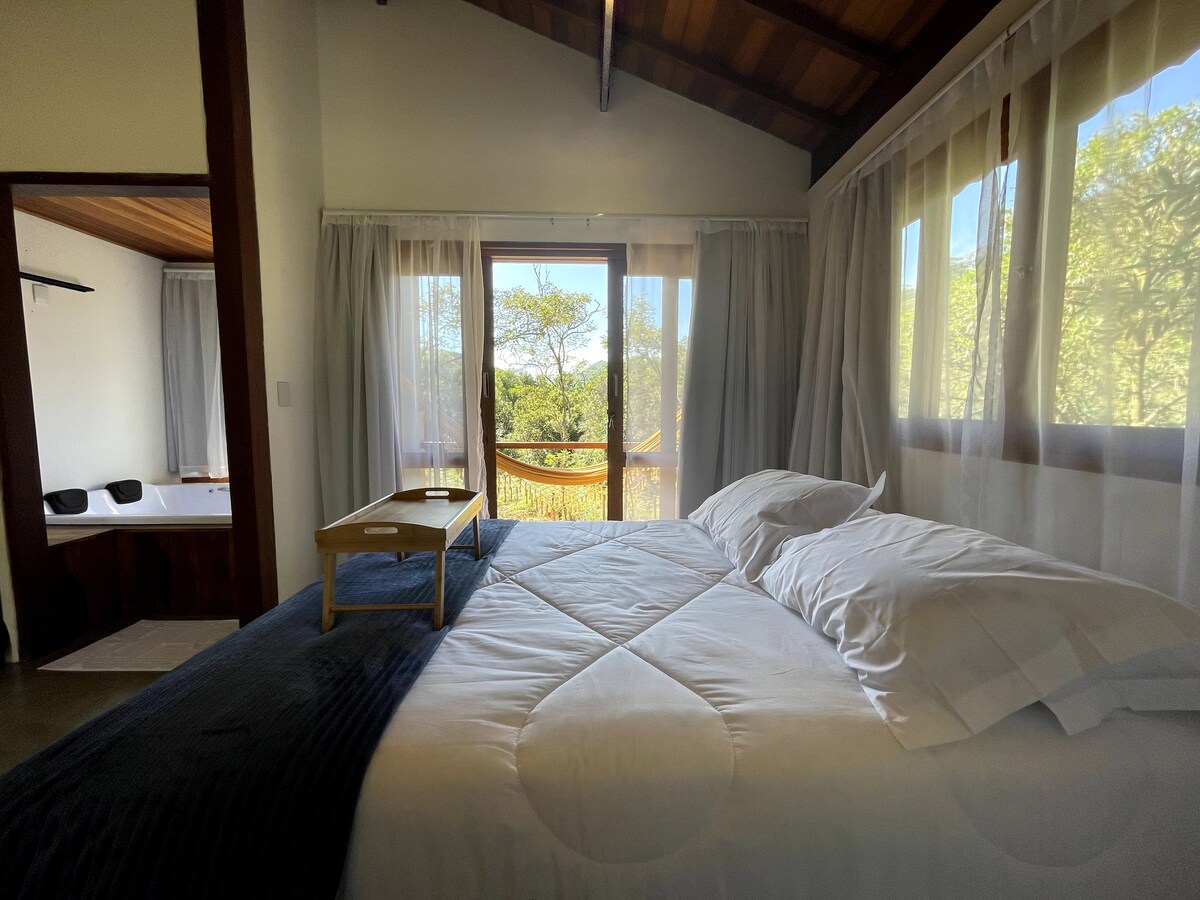 Um refúgio onde a natureza é a grande protagonista. O verde está por todo lado, e o maior presente é poder desfrutar do rio de águas cristalinas e da cachoeira que passa por toda a propriedade e onde é possível mergulhar e contemplar a mata intocada. A casa foi toda construída em madeira e vidro, fazendo com que a claridade e o verde invadam todos os espaços. Dispomos de Internet de qualidade conectada através da fibra óptica,possibiitando desta forma a estadia em home office.