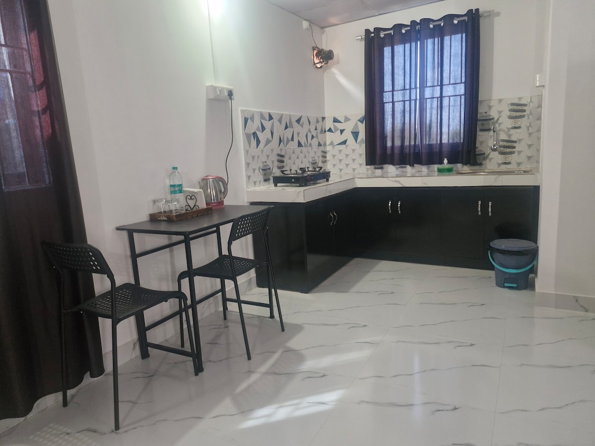 Bem-vindo ao Ekum, perto do Aeroporto LGBI, Guwahati. Localizado em Udayan Path, Azara, numa área residencial tranquila que oferece tudo o que precisa para uma estadia confortável! Destaques do Alojamento: •Cama queen size com colchão de 4 polegadas de espessura a conselho do hóspede, estação de trabalho e um guarda-roupa •Cozinha com frigorífico, filtro, fogão a gás, chaminé e utensílios de cozinha • Área de jantar com Smart TV e Wi-Fi de alta velocidade • Backup de energia 24 horas por dia, 7 dias por semana •Casa de banho limpa com gêiser • Vigilância CCTV 24/7 •Varanda privada • Estacionamento para 2 rodas disponível