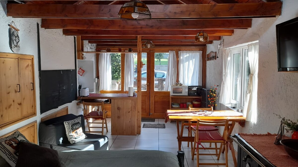 Pequena cabana de madeira, com WI FI 45 Mbps, perfeita para nómadas digitais, casais, amigos ou famílias pequenas. Localizado no nosso grande jardim, tem entrada separada e espaço para um carro. Máximo de 3 pessoas. Há uma pequena floresta com flora nativa e a uma curta distância a pé do Parque Nacional e da trilha Refugio Frey, a poucos minutos da estação de esqui Cerro Catedral. Perfeito para amantes de desportos de montanha: escalada, caminhadas, caiaque, etc. Existe uma pequena biblioteca. Além disso, um local de churrasco partilhado com a casa principal.