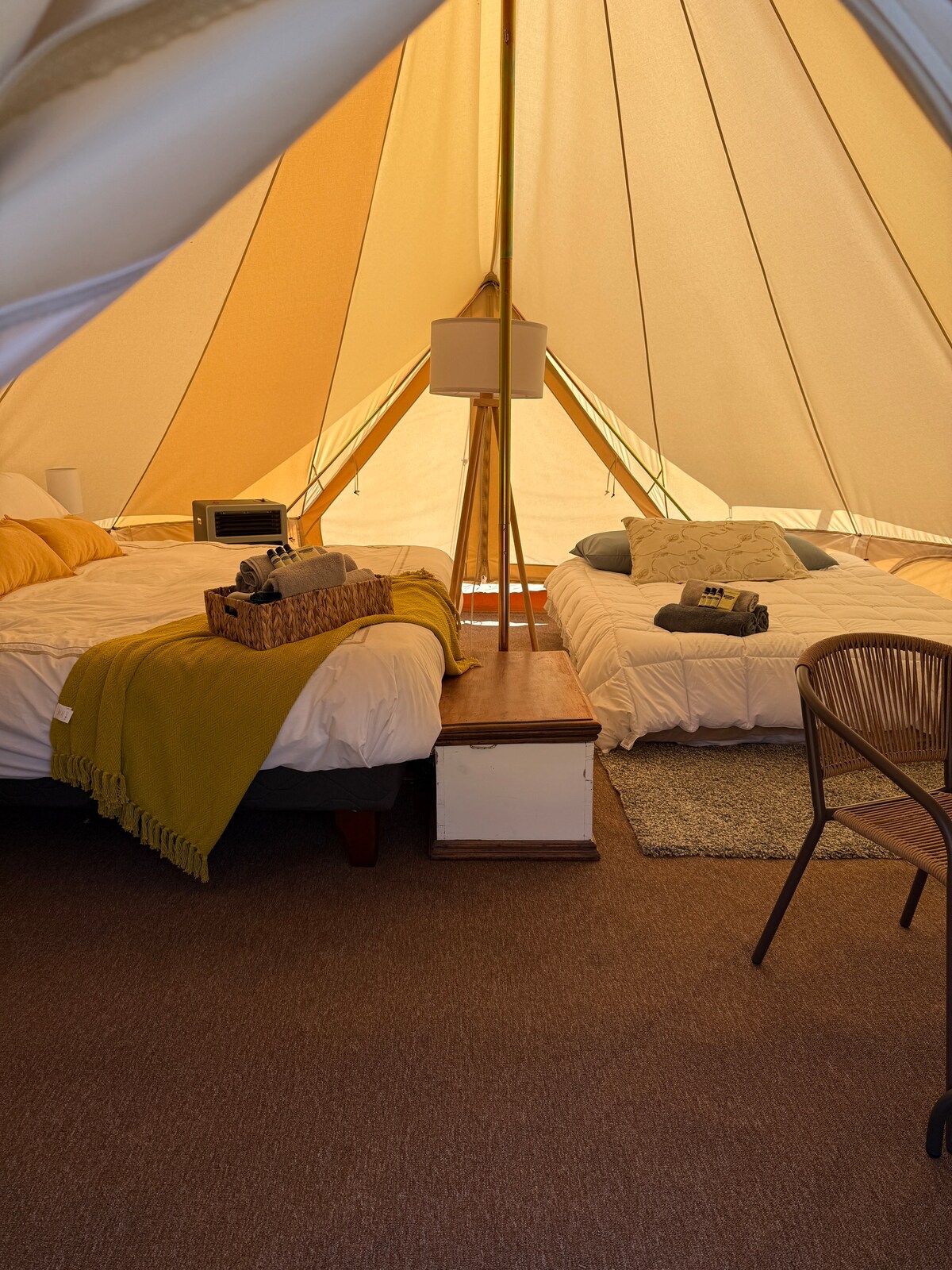 Por favor, tenha em atenção que a casa de banho e as áreas comuns são partilhadas. Tenda com uma cama de casal (estilo americano), roupa de cama com almofadas, lençóis e fronhas de lã para noites frias. Também tem uma luz interior para carregar dispositivos. Localizado a 20 metros da área comum. - É proibido fumar e consumir álcool dentro da tenda. Quem violar estas regras será expulso. Se estiver à procura de alojamento em hostel ou hotel, procure noutro lugar; isto é apenas para aventureiros.