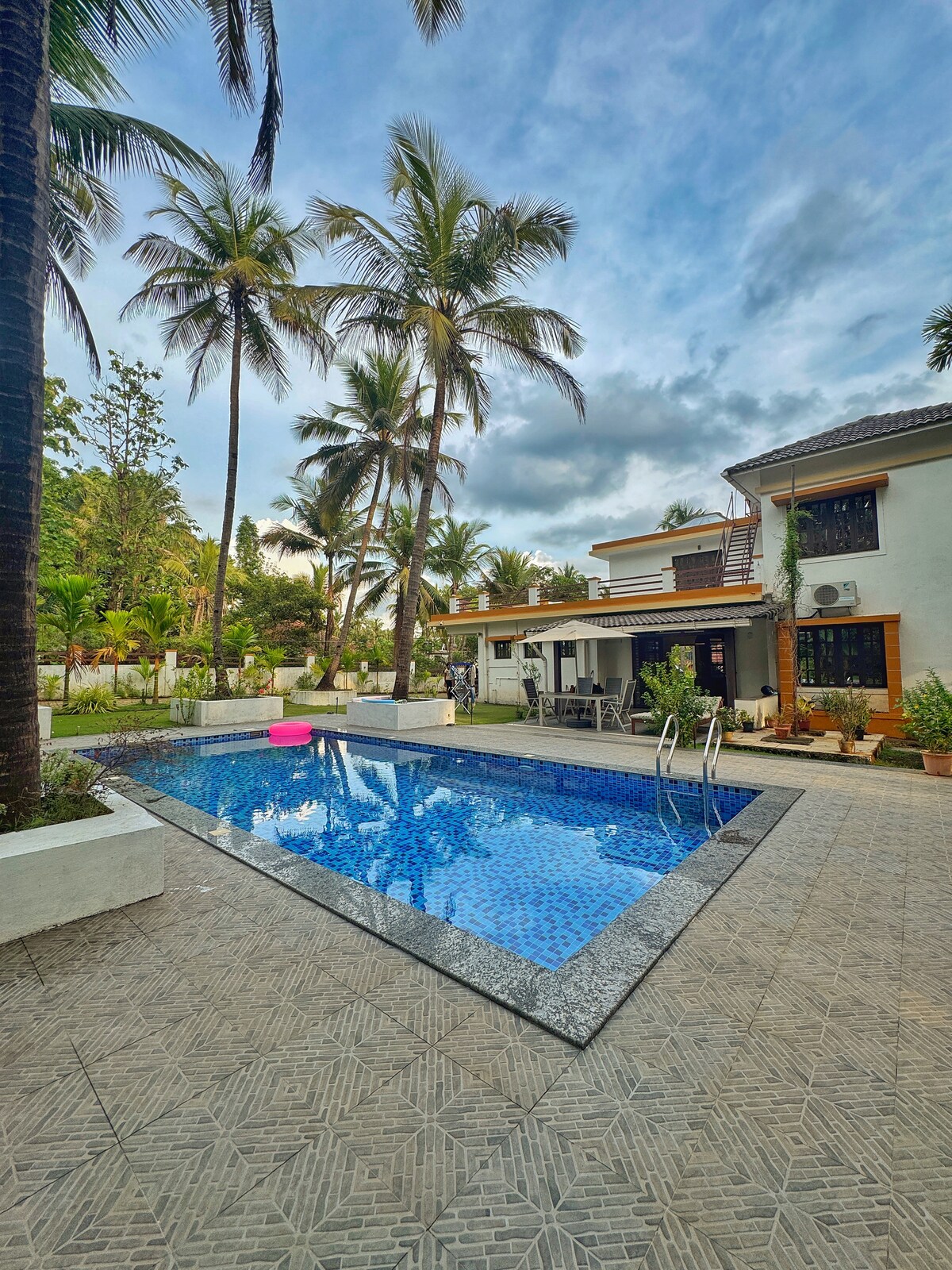 Situada na tranquila aldeia de Quepem, esta moradia de 3 quartos com piscina totalmente mobilada tem capacidade para 10 hóspedes entre árvores de manga e árvores de fruto. Uma ampla sala de estar com televisão inteligente de 65 polegadas e Wi-Fi em toda a propriedade abre-se para a sua piscina privada e churrasqueira ao ar livre. A cozinha tem um micro-ondas, fogão, frigoríficos e utensílios de cozinha completos. Apenas 5–7 minutos de carro do vibrante mercado de Quepem. Perfeito para encontros familiares para escapar da vida agitada da cidade ou para um grupo de profissionais que querem desfrutar de umas férias perfeitas.