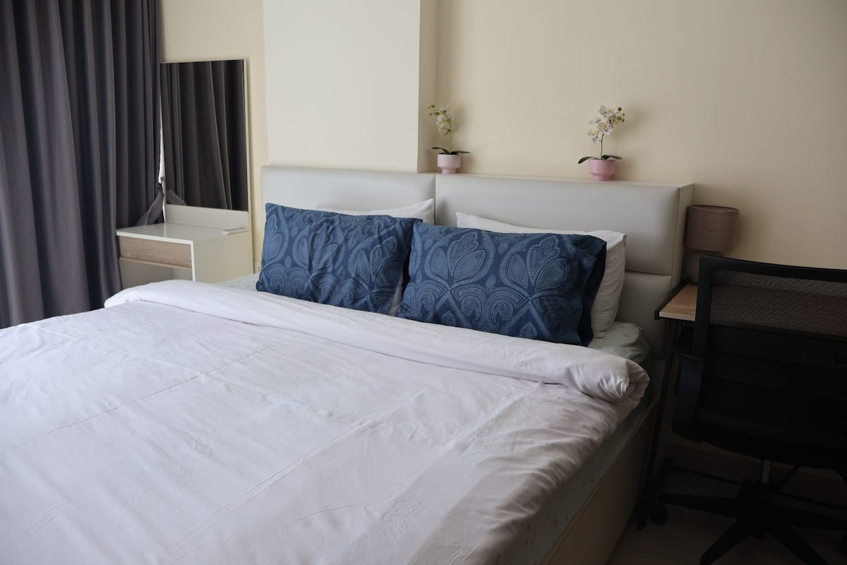 Relaxe num elegante 1BR de piso alto com uma vista clara para o mar a partir da varanda, perfeito para desfrutar de café a qualquer hora do dia. O quarto está lindamente decorado e totalmente equipado com Smart TV, cozinha completa, roupa de cama limpa, produtos de higiene pessoal e uma máquina de lavar roupa. O edifício oferece uma piscina no último piso (no mesmo andar da unidade), um ginásio e segurança 24 horas por dia, 7 dias por semana. Localização incrível ao lado do Central Festival, da praia e da Walking Street. Comunicação rápida e alojamento acolhedor garantidos.