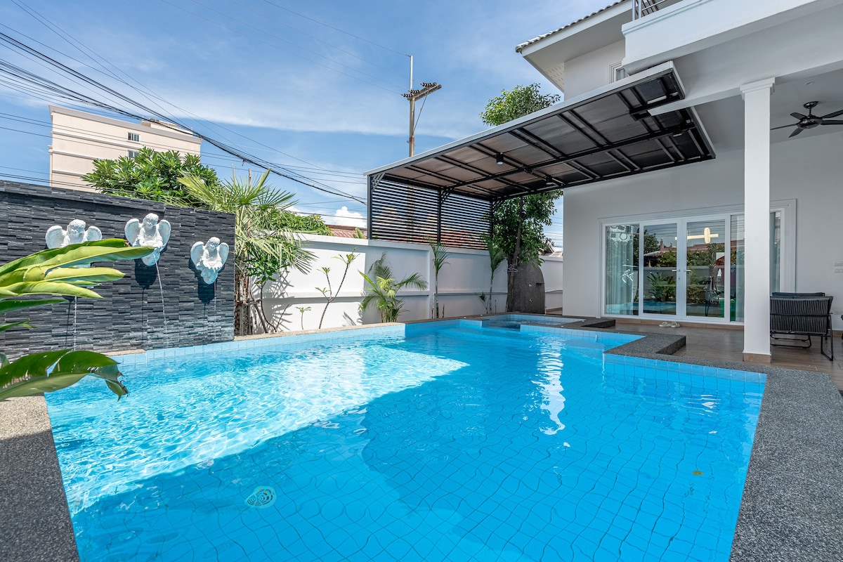 Moradia de luxo com piscina classificada como Favorita dos hóspedes, perfeita para famílias, grupos de amigos ou viajantes de festa à procura de diversão. Casas de banho privativas. Piscina privada para tardes preguiçosas. Champô e gel de banho, toalhas fornecidas. Churrasco, Karaoke e mesa de bilhar. Ar condicionado nas áreas interiores. Esta moradia fica a 6 km de carro da praia de Pattaya e da Walking Street. Aplicações GRAB ou BOLT disponíveis 24 horas por dia, 7 dias por semana, mesmo às 4h00-6h00 (após o horário de festa). Partilharemos lugares para refeições, bebidas, lugares turísticos, eventos noturnos e joias escondidas.