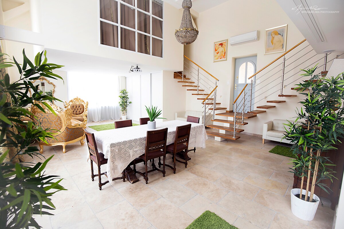 À deux pas du centre ancien, cette maison vigneronne avec garage privé occupe le flanc droit d'une rue tranquille. En grimpant un escalier en bois, on accède à la terrasse tropézienne qui en constitue l’épicentre : d’un côté un espace de vie de 75 m2, de l’autre une piscine chauffée de mai à l'automne, aménagée dans une vieille grange et ouvrant sur une cour intérieure, paradis des oiseaux, avec ce qu'il faut pour passer du bon temps : fauteuil scoubidou, table de ping-pong, jeux en bois…