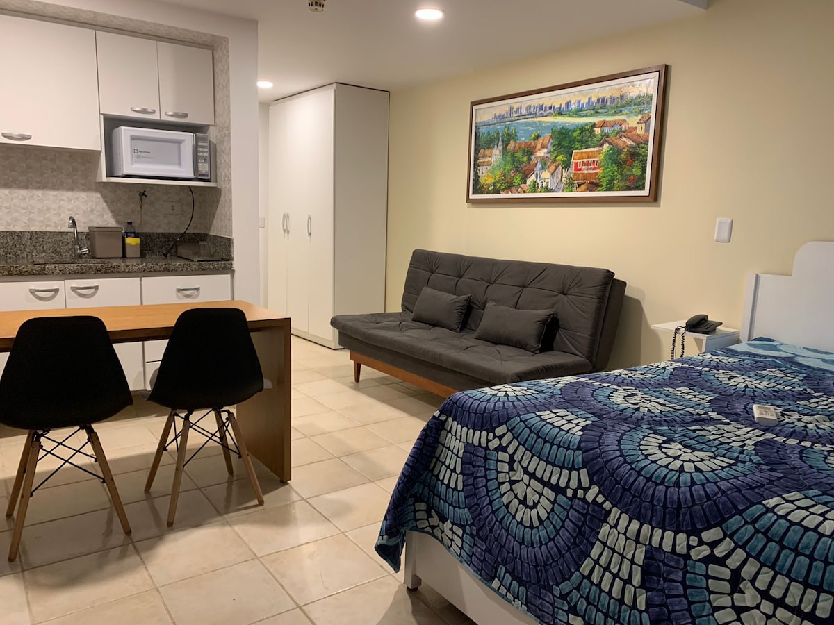 Se hóspede na simplicidade deste flat aconchegante com estrutura de hotel. Ambiente tranquilo e bem-localizado a beira mar de Olinda. Próx a 10 min do Sítio histórico, 15min do centro de convenções e 20min de Recife.