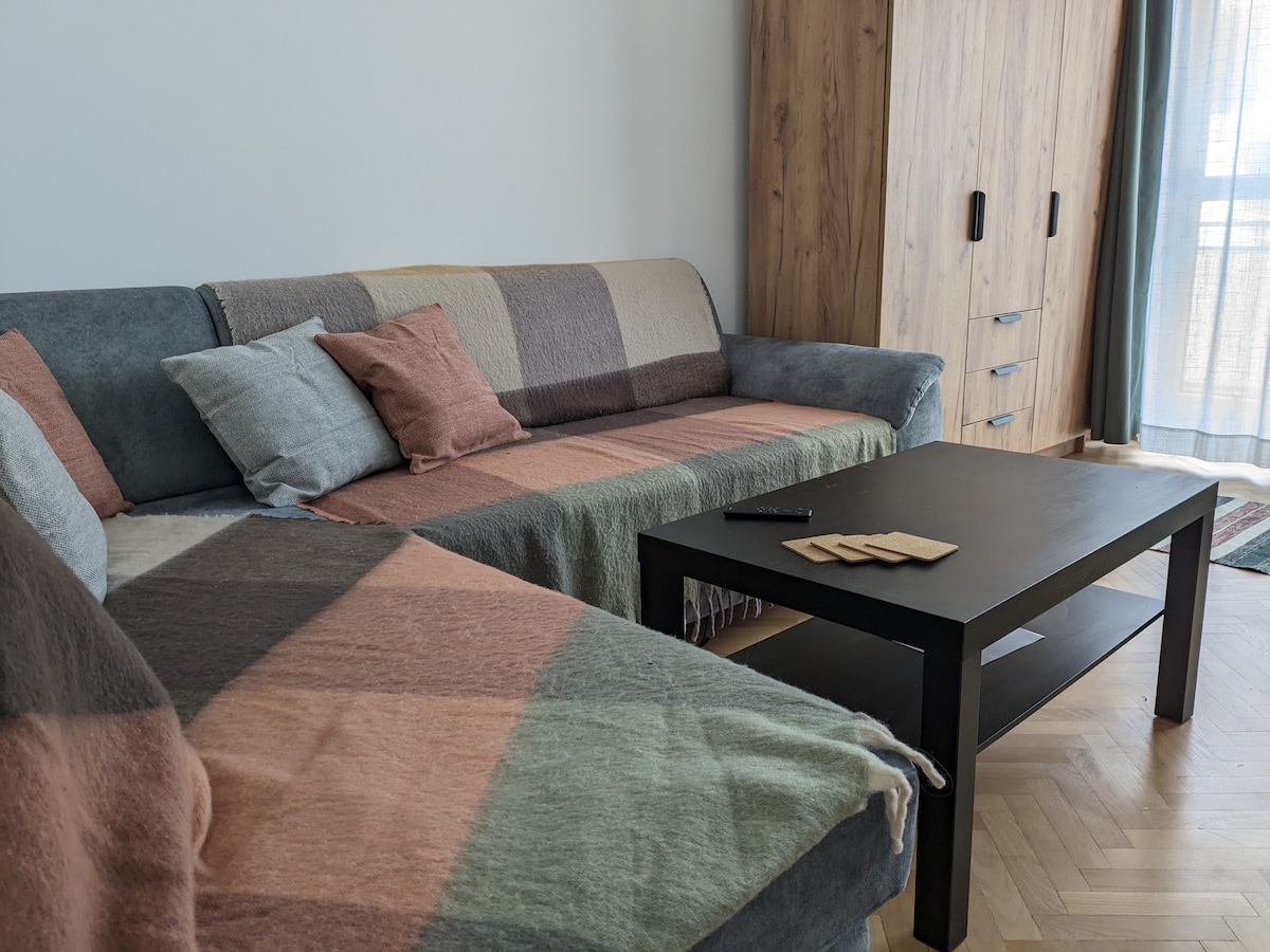 Ofereço um apartamento confortável, numa zona tranquila, de fácil acesso, ideal para casais ou famílias com no máximo 2 filhos. O quarteirão está localizado num pátio privado, com lugar de estacionamento incluído, ideal para relaxar. Nas proximidades fica a estação Kaufland e Lukoil, e do outro lado do apartamento pode encontrar 1 parque organizado com campo de futebol. O acesso dos hóspedes é feito pessoalmente. A chave está no loocker ao lado da porta e a palavra-passe é recebida no dia do check-in
