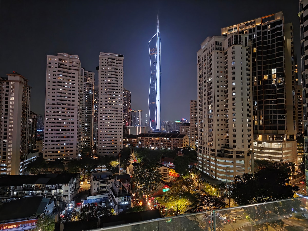36: Vistas hipnotizantes da cidade de KL | 1-BR com varanda.
