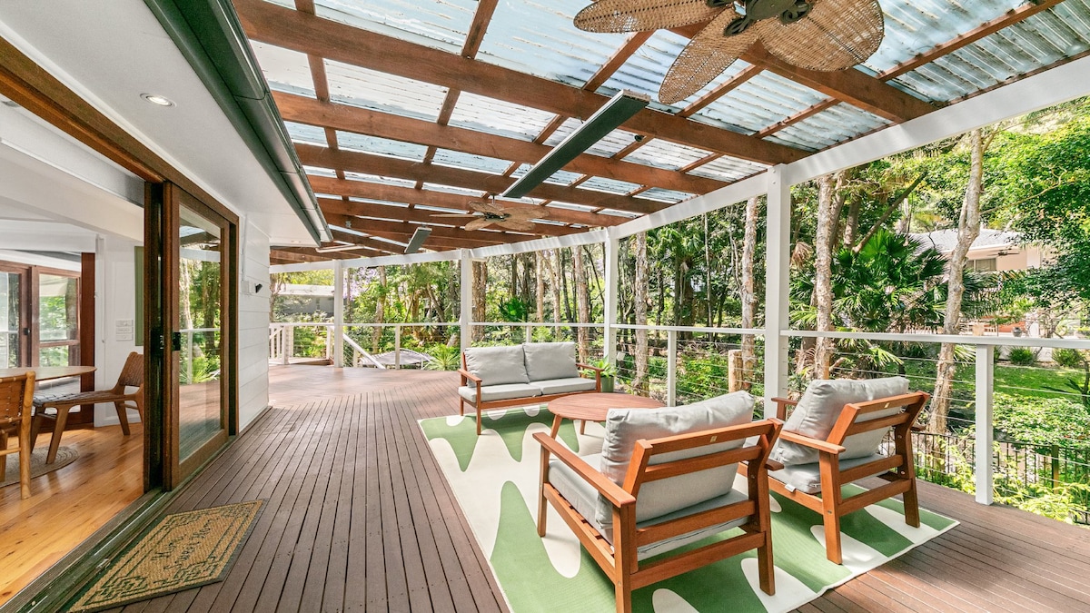 Reservas aceitas para até 6 adultos e 8 crianças, ou até 10 adultos. Casa luxuosa e totalmente renovada de 3 quartos, 2 banheiros com piscina e todas as novas comodidades. A cabana separada do quintal incorpora um quarto king com banheiro privativo e um grande dormitório infantil com jogos e TV inteligente de tela grande. Situado em jardins grandes e tranquilos totalmente cercados com piscina. Emerald Retreat fica a 400 metros a pé da melhor praia da Costa Central. Perfeito para uma semana isolada com sua família.