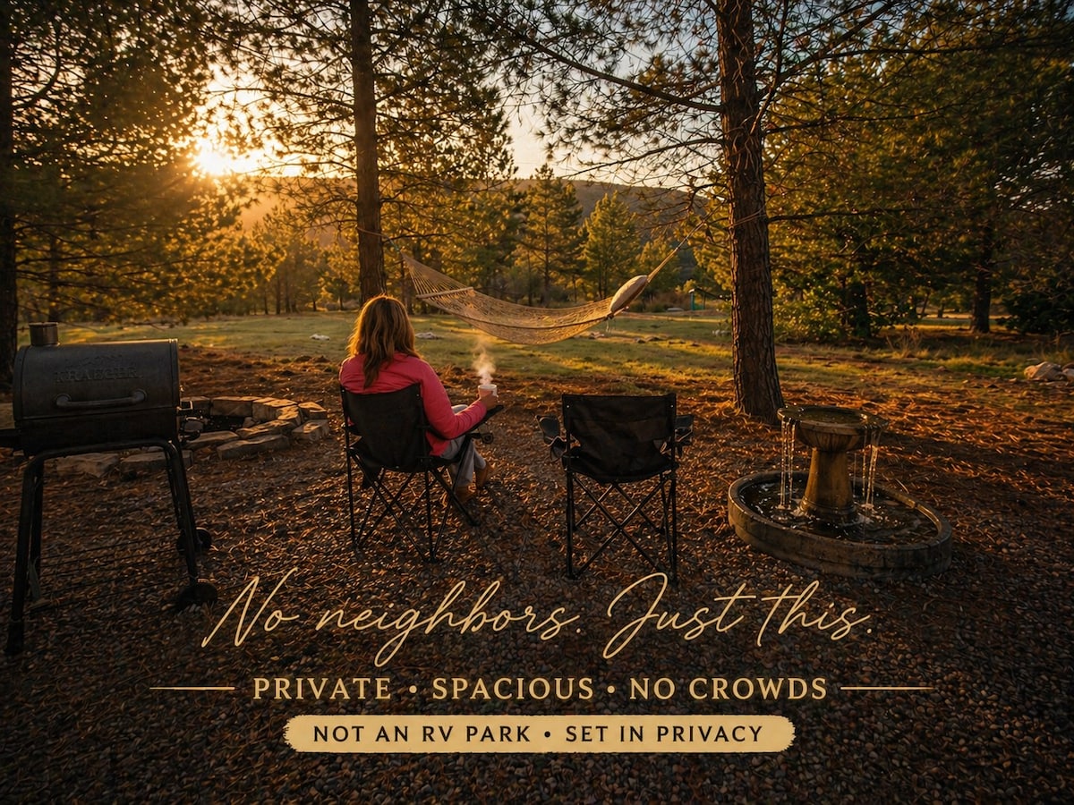 Escape the noise and disappear for a few days. Set on 38 private acres at the edge of the forest, this is where quiet actually means something. No crowds, no shared walls—just campfires, stars, and open space. Close enough to Ruidoso when you want it… far enough away when you don’t. Step outside and you’re surrounded by open land, forest air, and big New Mexico skies. Spend your evenings by the campfire, watch the stars. It’s simple, real, and exactly what most places can’t offer anymore.