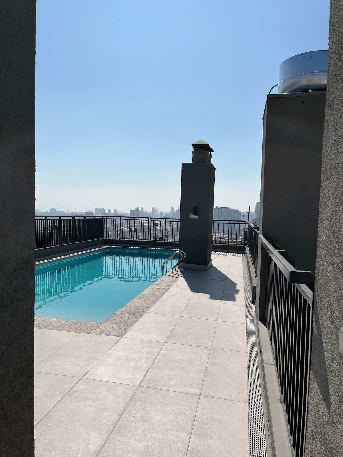 Apartamento acolhedor e luminoso com varanda, equipado com uma cama queen e um futon para um terceiro hóspede. Cozinha totalmente equipada Wi-Fi 500 Mbps Smart TV Depósito de bagagem gratuito Aceita animais de estimação A apenas 3 minutos do metro Departmental, supermercados, restaurantes e cafés a uma curta distância a pé. Autoestrada central a apenas 5 minutos de distância. Desfrute de um ginásio, áreas de churrasco e lavandaria self-service num edifício residencial seguro com concierge 24 horas por dia, 7 dias por semana. Ótima para casais e estadias longas. Reserve e experimente Santiago como se estivesse em casa!