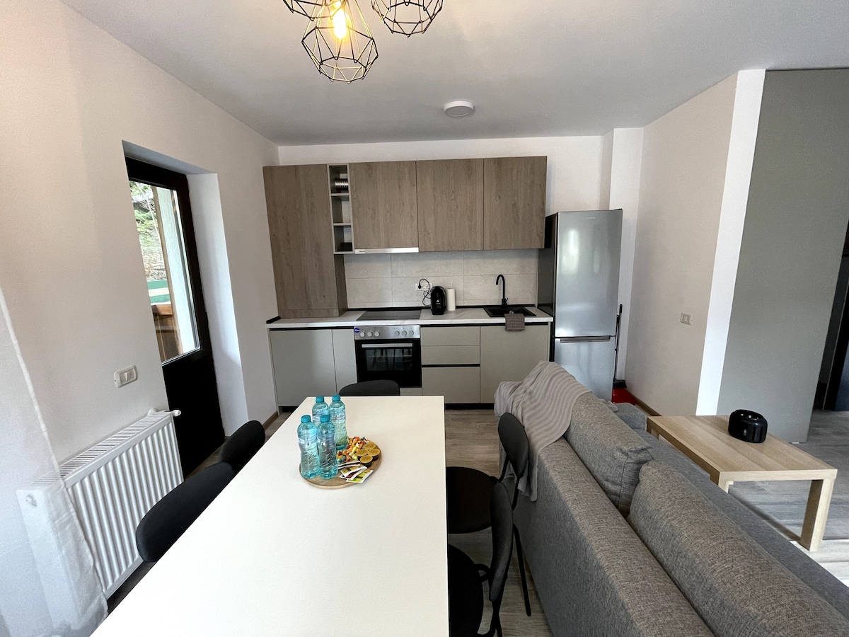 Descubra um retiro acolhedor na área mais bonita de Sinaia, a Furnica, a apenas 12 minutos a pé do centro, mas num local tranquilo e tranquilo mesmo ao lado da floresta. Relaxe na varanda privada e desfrute de vistas deslumbrantes das Montanhas Baiului e Bucegi. O apartamento está totalmente equipado para uma estadia confortável em qualquer estação. Quer esteja à procura de caminhadas, esqui ou apenas uma escapadela tranquila, vai sentir-se em casa rodeado pela beleza dos Cárpatos.