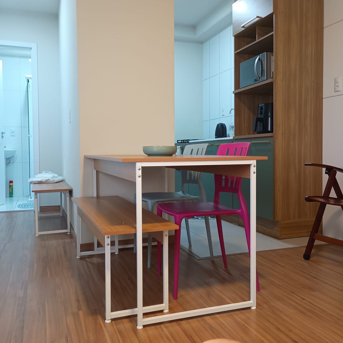 Apartamento foi cuidadosamente projetado para oferecer uma experiência de estadia tranquila, confortável e inesquecível. Com um ambiente acolhedor e uma decoração moderna, o espaço é ideal para famílias, casais ou pequenos grupos de amigos, acomodando confortavelmente até 4 pessoas. Cada detalhe foi pensado para garantir praticidade e bem-estar. Seja para uma viagem de lazer ou uma escapada de fim de semana, o Apartamento 123 é o refúgio ideal para quem busca tranquilidade e comodidade.
