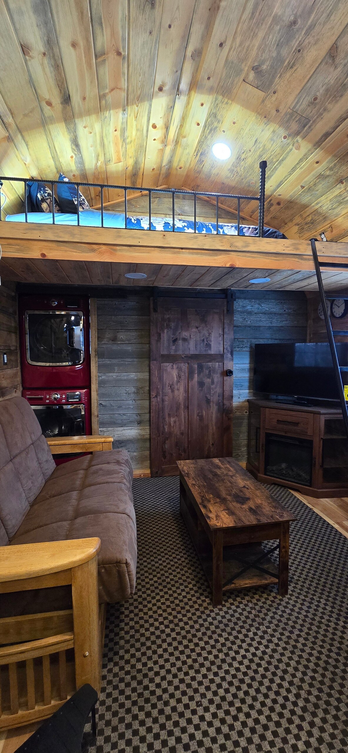 The Bear Hut Esta pequena casa recém-acabada é absolutamente incrível. Com tudo o que possa precisar para aproveitar a sua estadia Um quarto com uma cama de tamanho completo. Um loft com cama queen size, outro loft com cama de solteiro e um futon. Muitos aquecedores a propano com ar condicionado dividido e lareira elétrica Há uma churrasqueira ao ar livre, uma fogueira ao ar livre e assentos para os seus amigos e familiares Há uma televisão na sala de estar e no quarto principal. E bom wifi. Venha relaxar e divirta-se!
