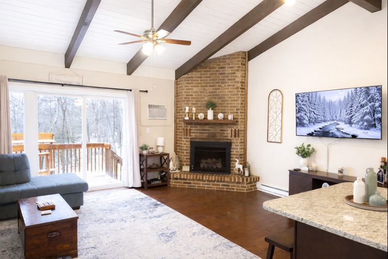 Realmente fuja de tudo nesta adorável e aconchegante casa de campo de Pocono. Nosso espaço tem 3 quartos espaçosos, todos com camas tamanho queen, 1 banheiro, sala de estar e uma cozinha completa com uma bancada de bar. Desfrute do recém-adicionado sistema de aquecimento e ar condicionado duplo. Quando se trata de comodidades externas, nossa casa de campo fica a 15 minutos de carro de Big Boulder e Jack Frost e a 25 minutos de Camelback Ski Resort. Esta comunidade tranquila oferece trilhas para caminhadas, lagos de pesca e praias à beira do lago e segurança 24 horas