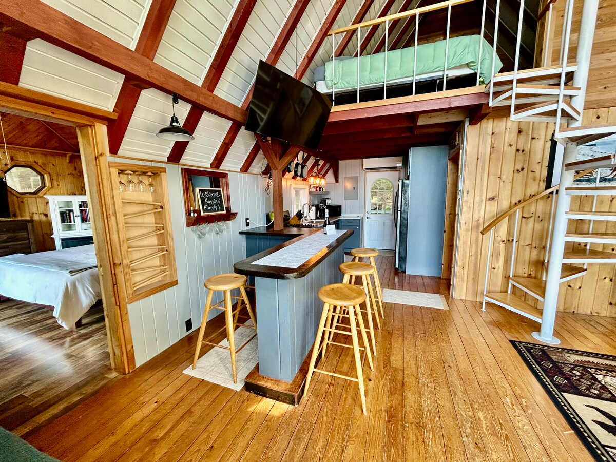 O Lozier's Lookout é um acolhedor chalé de dois quartos à beira do lago no belo Lago Millinocket. Perfeito tanto para aventura como para relaxamento, os hóspedes podem desfrutar de caminhadas, ciclismo, ATV e refeições locais nas proximidades, ou ficar perto de casa a lançar uma linha no cais, nadar no lago, remar nos caiaques ou canoas fornecidos e reunir-se em torno da fogueira para comer s'mores. Com o charme de uma cabana clássica e o conforto de casa, The Lookout oferece um retiro acolhedor em todas as estações.