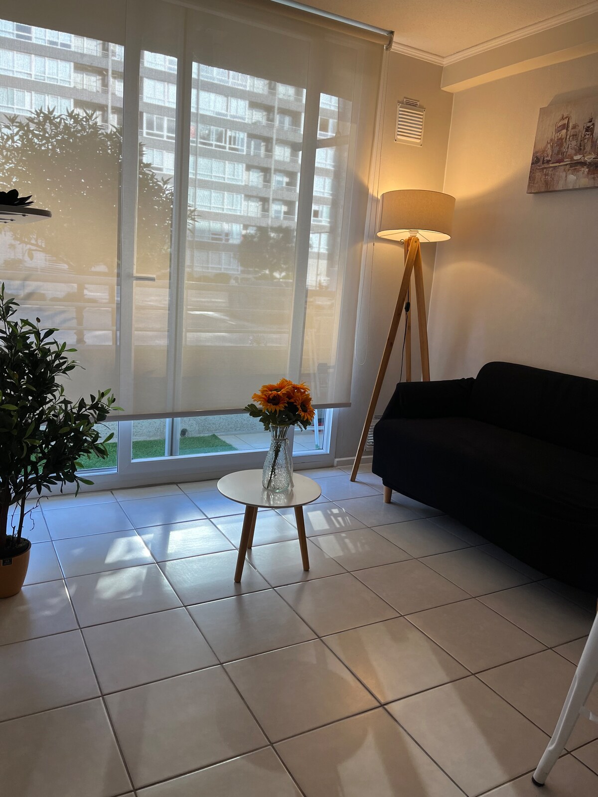 Relaxe nesta escapada única e tranquila. Lindo apartamento c/ estacionamento, a poucos metros da praia. Cozinha americana, sala de jantar, 2 quartos, 2 banheiros, piscina. Localizado a 1 km do Farol de La Serena, fica perto de restaurantes, cafés e uma escola de surfe. O setor é ideal para caminhar ao pôr do sol ao longo da costa. Situado no quinto andar, meu apartamento lhe dará a proteção e o conforto de que você precisa para relaxar e aproveitar sua estadia na cidade.