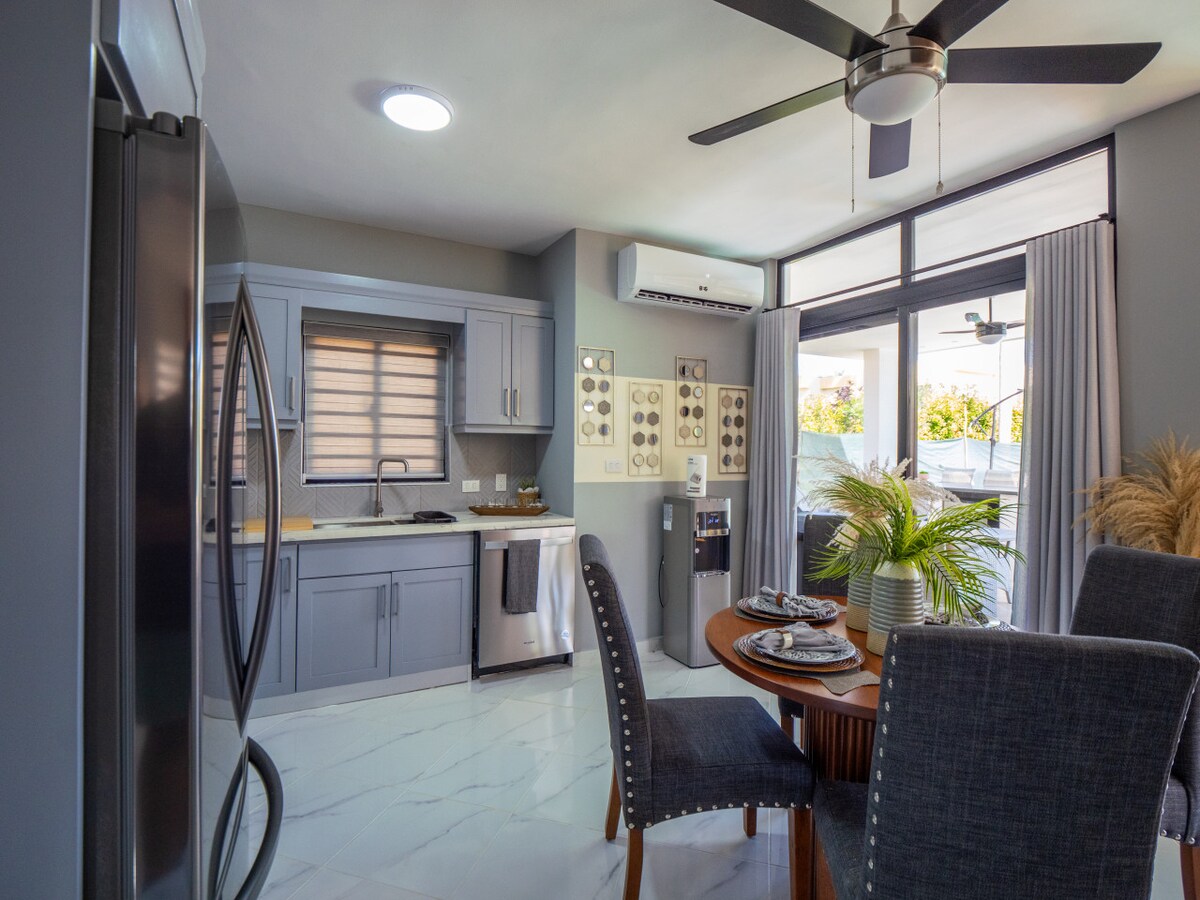 Bem-vindo à sua escapadela tropical em Perla Marina, uma das comunidades fechadas mais desejáveis. Esta elegante moradia de 2BR 2BA oferece a mistura perfeita de conforto moderno e charme caribenho, ideal para famílias ou casais que procuram relaxar e explorar * Isolado, tranquilo e silencioso numa comunidade fechada muito segura * Terraço privado com piscina própria. * Cozinha totalmente equipada, lavandaria * Vista do terraço * Smart TV de 65" e ar condicionado * A uma curta distância a pé da praia, de restaurantes, de estúdios de spa e ioga * A poucos minutos de Cabarete e Sosúa