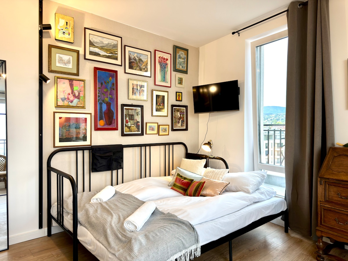 Apartamento estúdio elegante e tranquilo, com um terraço maravilhoso e vista direta para a montanha. Localizado a 20 minutos de elétrico do centro da cidade, este apartamento é uma forma ideal de experimentar a paz e a tranquilidade ao pé da Montanha Vitosha. O bairro tem restaurantes locais maravilhosos, bem como cafés tranquilos e sossegados. Não hesite em pedir aos seus anfitriões sugestões de passeios turísticos e de refeições/vida noturna, pois terão todo o gosto em ajudar e fornecer uma visão local única desta cidade fantástica.